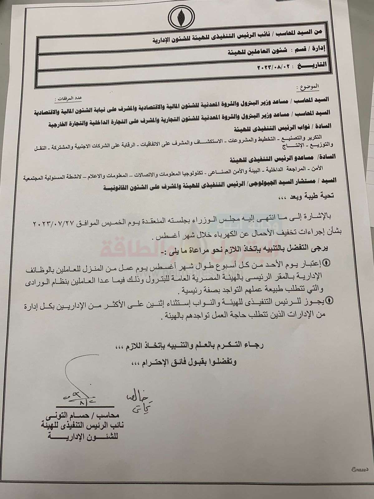 كتب رأفت إبراهيم…بالإشارة إلى ما انتهى اليه مجلس الوزراء بجلسته المنعقدة يوم الخميس الموافق ٢٠٢٣/٠٧/٢٧ بشأن إجراءات تخفيف الأحمال عن الكهرباء خلال شهر أغسطس