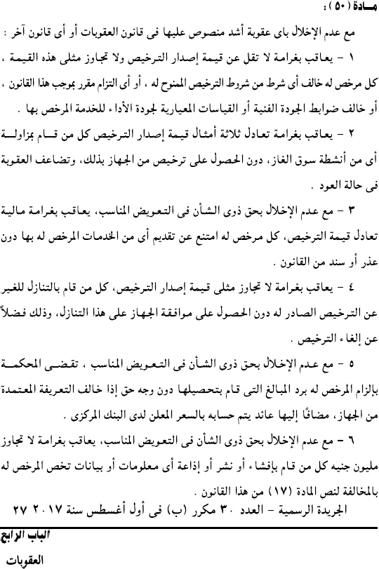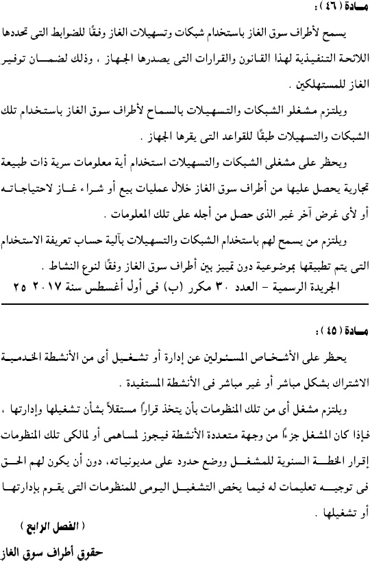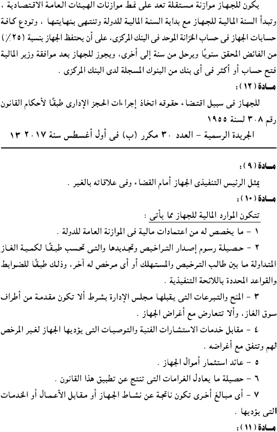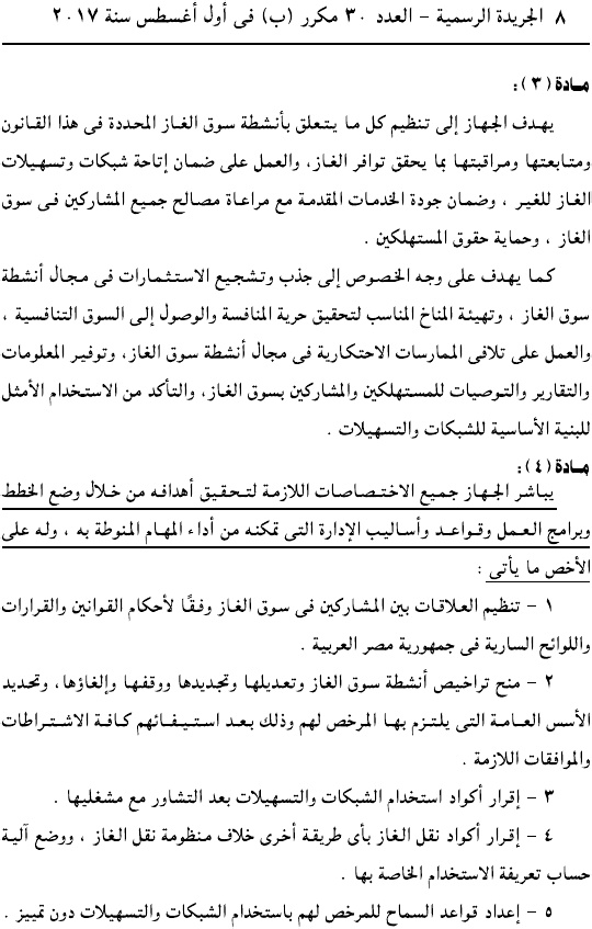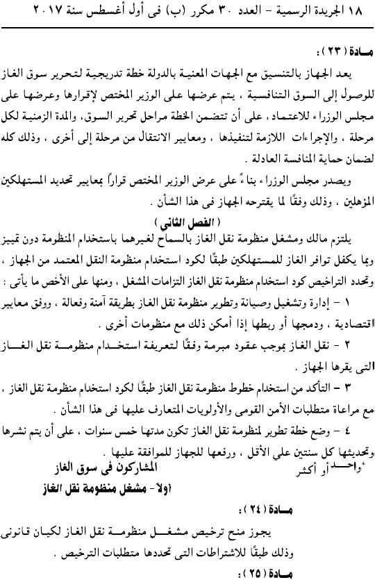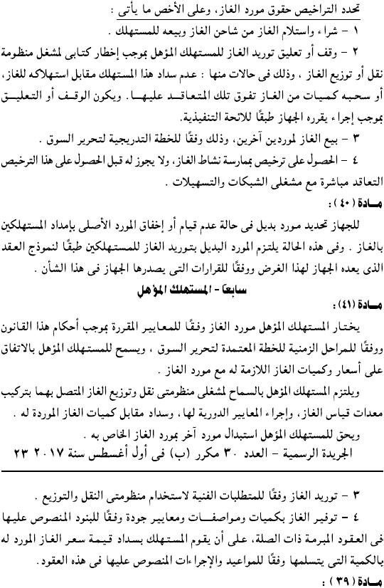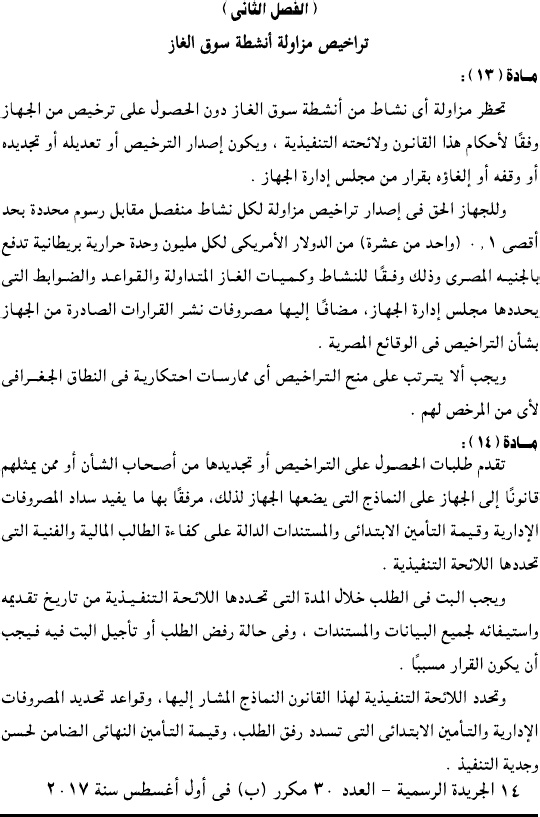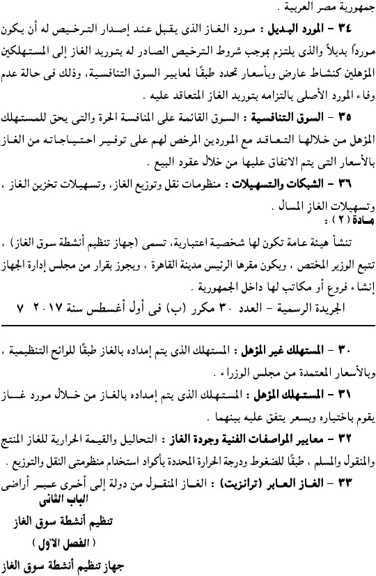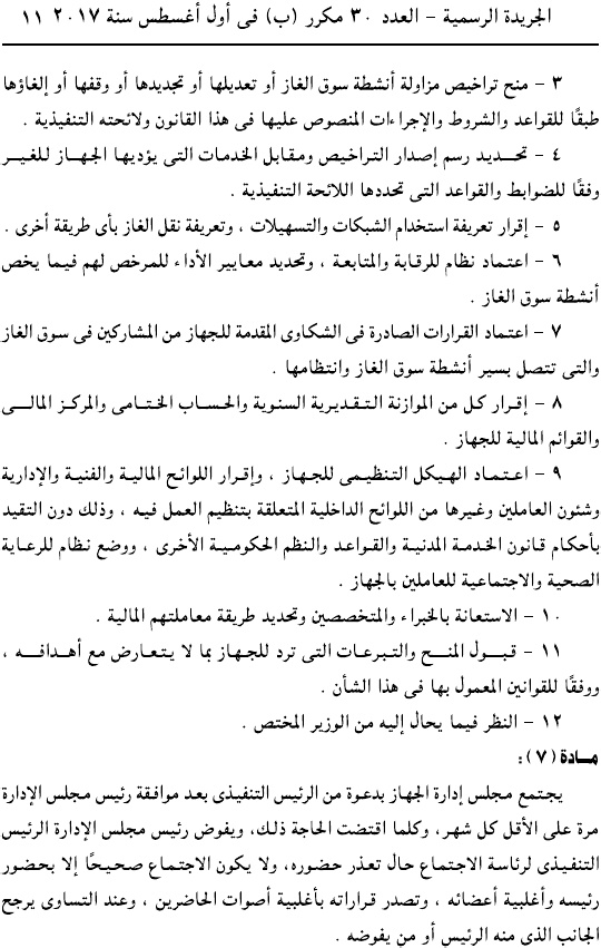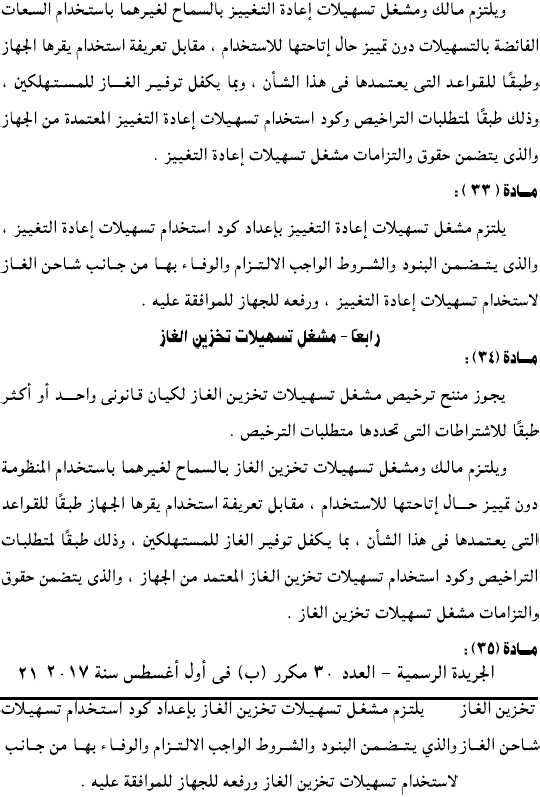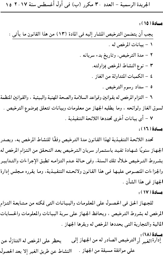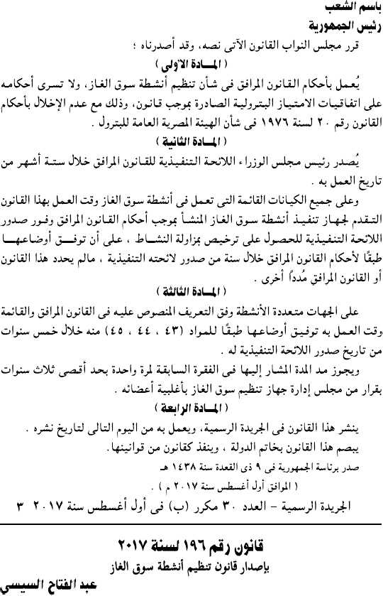 وحمل القرار رقم 196 لسنة 2017، وألزم جميع الكيانات العاملة في سوق الغاز بالتقدم لجهاز تنفيذ أنشطة سوق الغاز للحصول على ترخيص مزاولة النشاط.