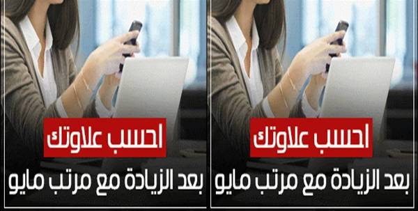 أجرك الأساسى..700 علاوتك70 جنيه واجمالى 11 شهر770 جنيه