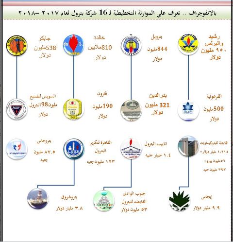 بالانفوجراف .. تعرف على الموازنة التخطيطية لـ 16 شركة بترول لعام 2017 -2018