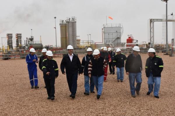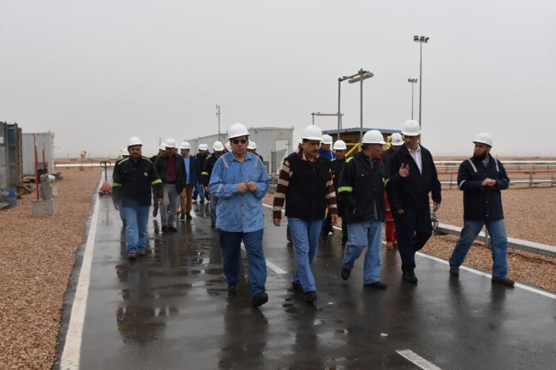 وخلال الزيارة التفقدية للحقول التقى الجيولوجى علاء البطل العاملين في حقول عجيبه.