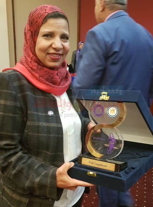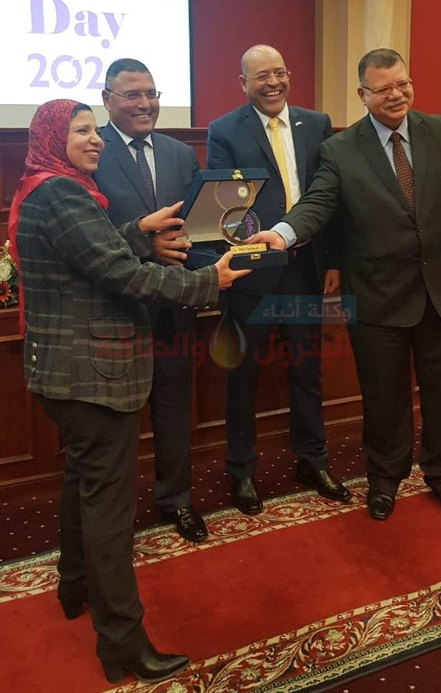 كرم قطاع البترول فى خلال احتفالية اليوم العالمى بالمرأة فى الشركة القابضة للغازات الطبعية ايجاس، الاستاذه سناء فهمى البنا مساعد نائب الرئيس التنفيذى لهيئة البترول للشئون الإدارية والمشرف على الإدارة العامة للعلاقات العامة الحكومية.
