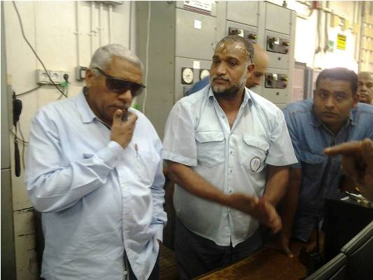 ويرافقه خلال الجولة المهندس سيد عبد الرحمن مساعد رئيس الشركة للعمليات والجيولوجى جمال خضر مساعد رئيس الشركة للإستكشاف والعمليات الخارجية والمهندس دسوقى أحمد فؤاد مساعد رئيس الشركة للتخطيط والمشروعات والقائم بأعمال مساعد رئيس الشركة للخدمات المساعدة ومحمد مختار مساعد رئيس الشركة للموارد البشرية والمهندس إيهاب الشربينى مدير عام الغاز ومديرو العموم ومديرو العموم المساعدين بالحقول وكل من أشرف شنهورى وأشرف داوود والسيد محمد أبو بكر أعضاء مجلس الإدارة و محمد صالح رئيس اللجنة النقابية و محسن عليوة الأمين العام للجنة النقابية .