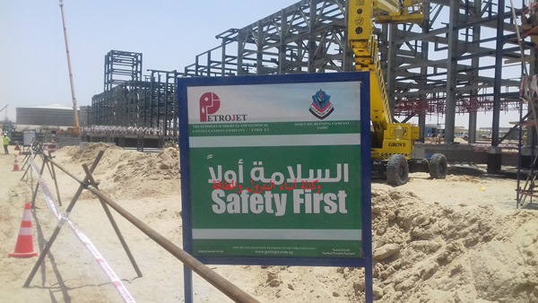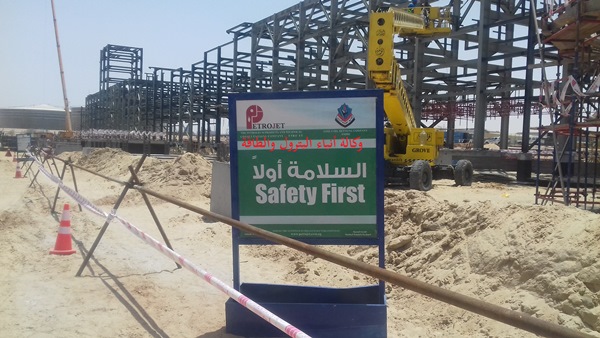 عند تفقد المشروع تحاصرك لافتات السلامة أولاً، وعندما تنظر إلى ملابس الوقاية والحماية للعاملين واسلوب العمل المنظم والدقيق داخل مواقع العمل تجد أن أمان العاملين وتطبيق نظم السلام والصحة المهنية فوق كل اعتبار ، فلا مجال للتهاون فى ذلك .