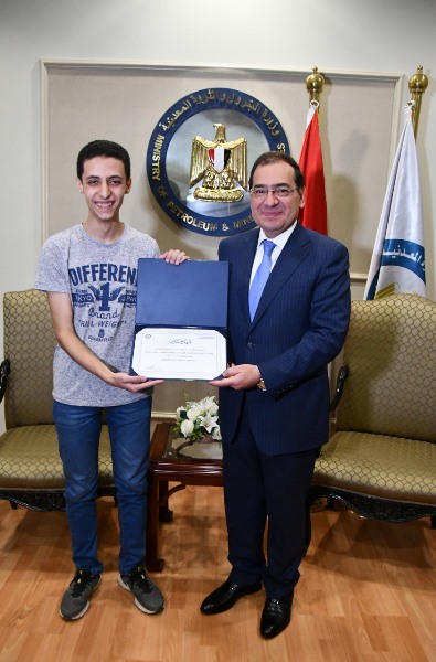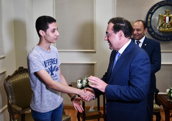 بالصور..وزير البترول يكرم الحاصل على المركز الأول بالثانوية العامة من أبناء العاملين بالقطاع