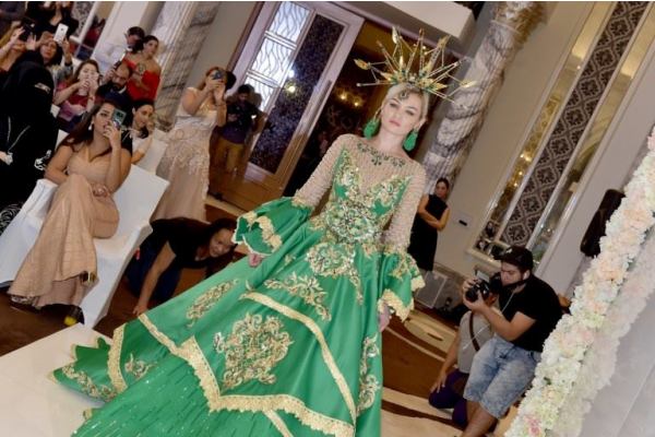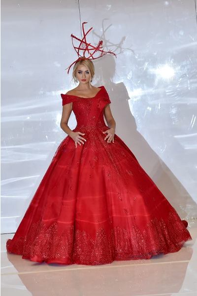 وقدمت منى المنصورى خلال العرض٢٠ قطعة فنية متميزة منها 4 فساتين زفاف وفستان حنة ملكي ومجموعة من فساتين الزفاف والسهرة واعتمدت على ألوان الباستيل والألوان الناعمة من خلال قصات والتطريزات جديدة ومبتكرة