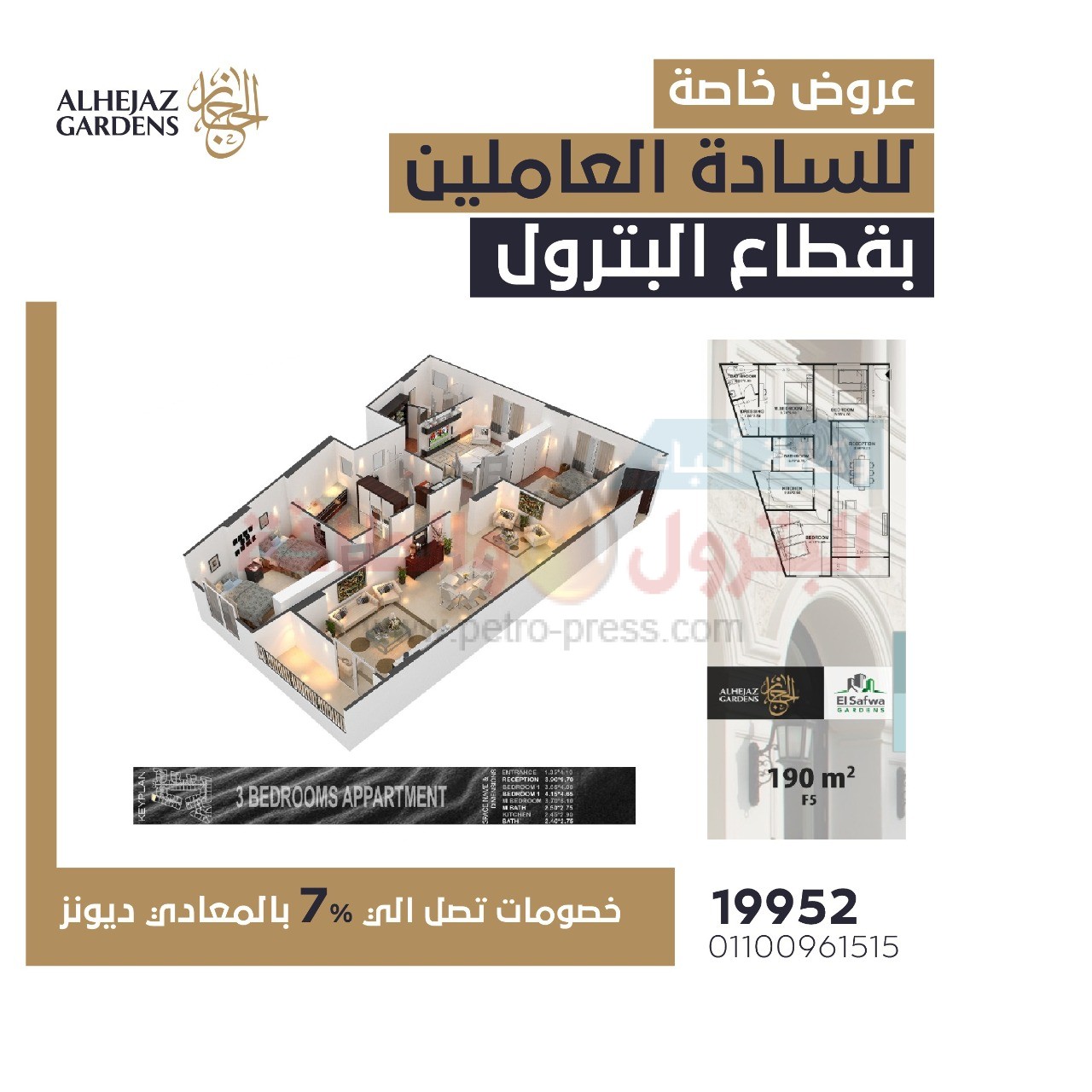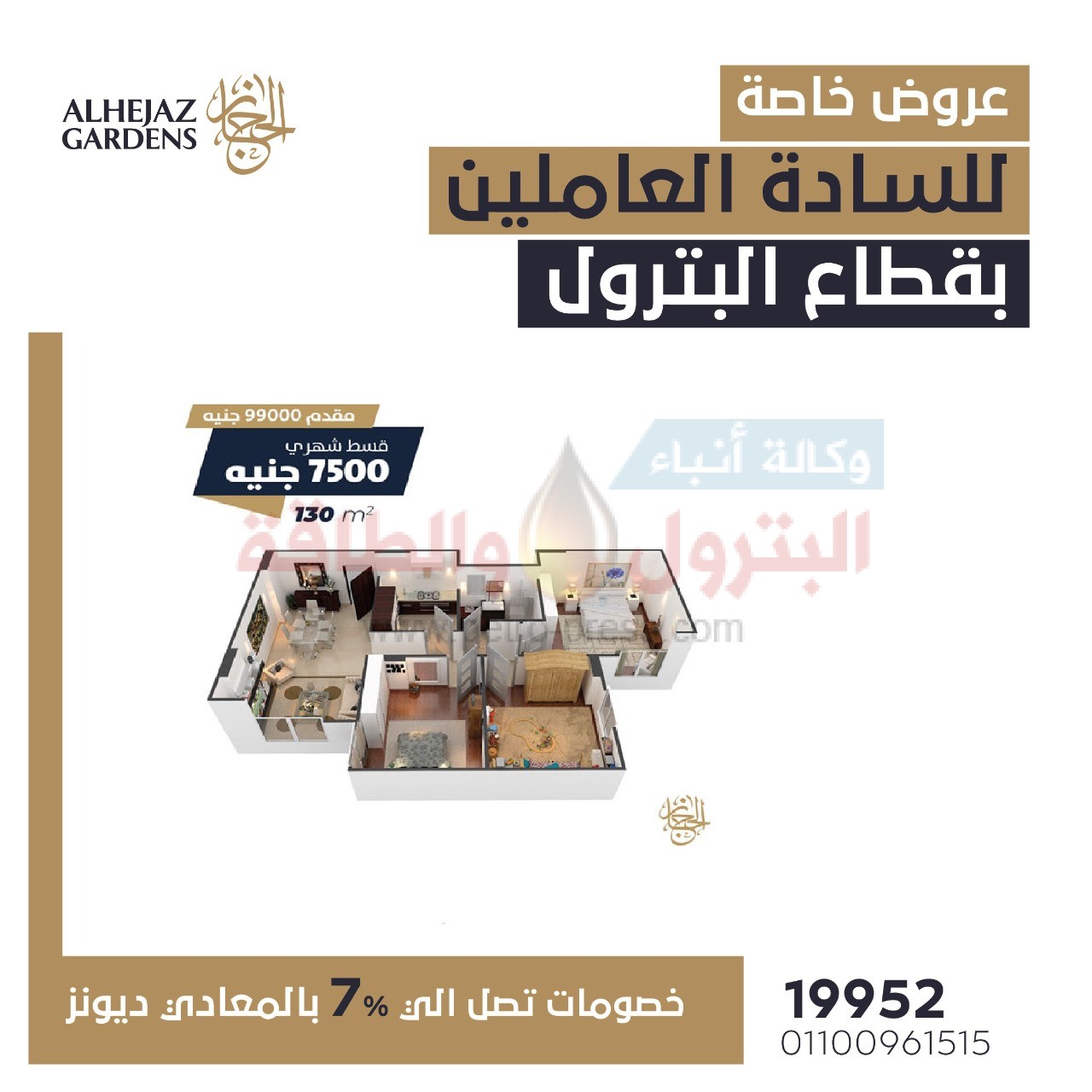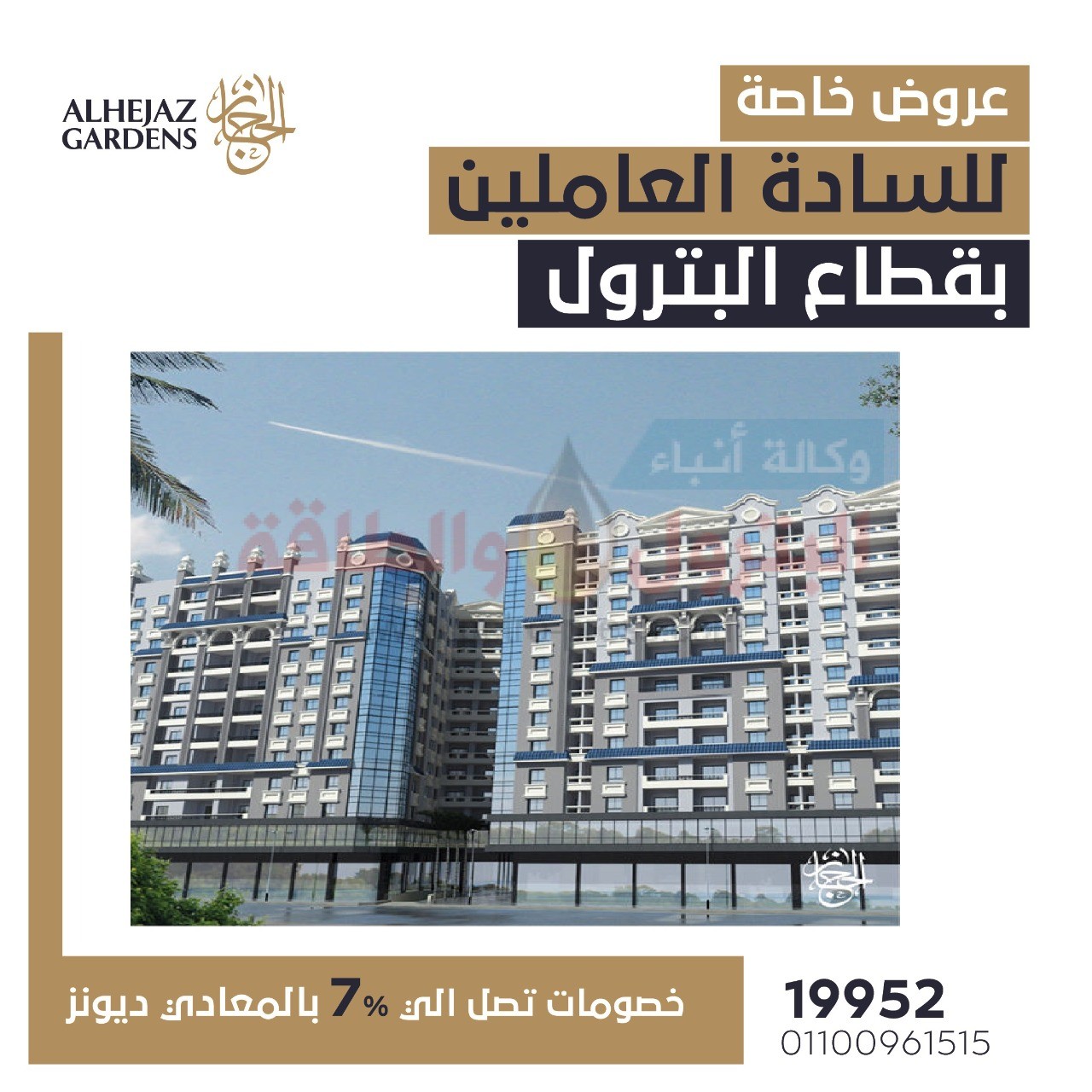 فتحت شركة الحجاز جاردنز للتنمية العقارية، باب الحجز مره أخرى للعاملين بشركات قطاع البترول،وذلك بعد الاقبال الكبير فى الطرح الأول، ووبناء على طلب عدد كبير من العاملين،تقدم عروض وخصومات خاصة تصل الى 7% للعاملين في كافة الشركات و النقابات و جميعات الاسكان في قطاع البترول .. في مشروع كمباوند المعادي ديونز …للحجز و الاستعلام يرجى الاتصال على 19952 او 01100961515….أختار إطلالة شقتك وأحجز وحدتك الأن في كمباوند المعادي ديونز…* بمساحات تبدأ من 110م حتى 190م…* بتقسيط حتى 80 شهر بدون أي فوائد….* وبمقدم يبدا من 10% فقط،..وفرنا لك وللعائلة خدمات تجعل الحياة أسهل ( Swimming pool – Kids Area – GYM – CLUBHOUSE حضانه – مسجد – حدائق وشلالات ونوافير – امن وحراسة – كاميرات مراقبة – انتركم مرئي – دش مركزي – مداخل رخام باعلى مستوى – اسانسير باعلى جودة……..أختار الإطلالة المناسبة على الساحة الرئيسية أو الشارع الرئيسي أو الحديقة الداخلية والشلال اوSwimming pool….الاستلام بعد 3سنوات ونصف….بجوار مودرن اكاديمي على الطريق الدائري و بالقرب من أهم الخدمات.. مدارس أندية مولات بنوك… نصف تشطيب.للمزيد زورو مواقعنا WWW.ALHEJAZGARDEN.COM لمتابعة المشروع و اخر العروض يرجى زيارة www.facebook.com/ alhejazgardens للحجز و الاستعلام يرجى الاتصال على 19952 او 01100961515