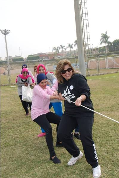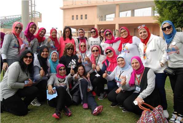 حيث شارك في اليوم الرياضي، للمرأة العاملة، امانه المرأه بجميع شركات البترول شمل اليوم العاب شد الحبل والجري والمشي والباسكت ولقي اليوم إقبال من جميع الأمانات داخل الشركات