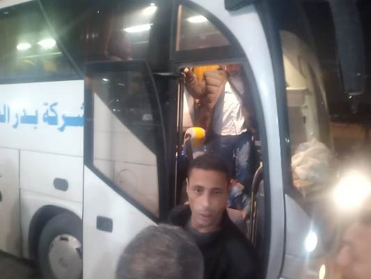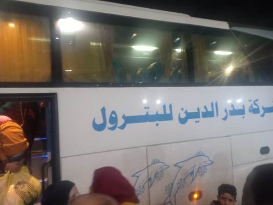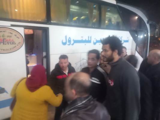 حصرى..صور لحظة وصول أتوبيس العاملين فى ابسكو من حادث شرم الشيخ أمام مقر بدر الدين للبترول