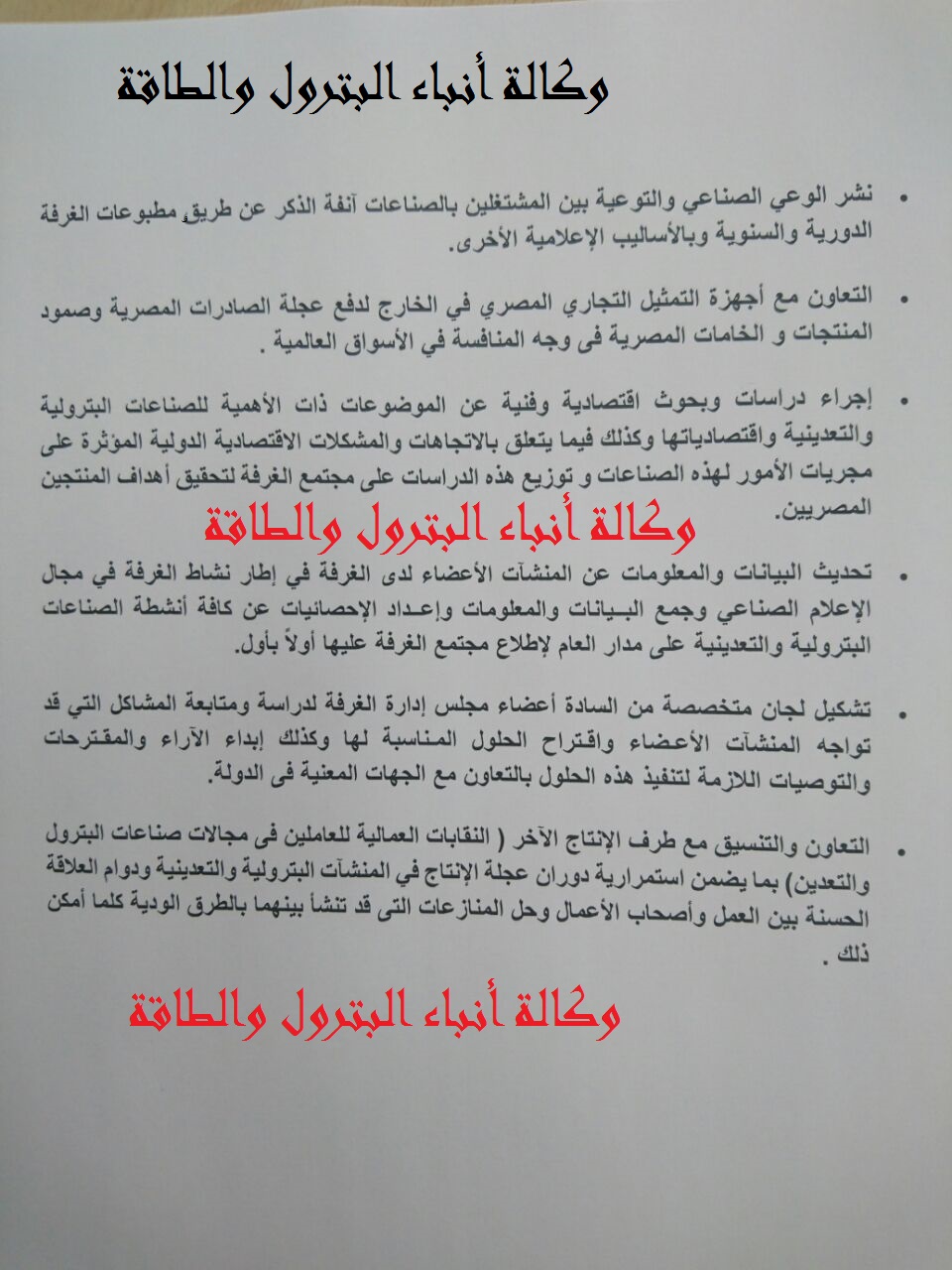 ومن أهم أهداف غرفة صناعات البترول والتعدين: