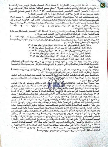 حيثيات الحكم قالت أيضاَ أن المادة الأولى من القانون 149 لسنة 1988 الصادر بشأن تقرير علاوة خاصة للعاملين بالدولة والقطاع العام – تنص على أن: «يمنح جميع العاملين بالدولة علاوة خاصة شهية بنسبة 15% من الآجر الأساسى لكل منهم فى 30/6/1988 أو فى تاريخ التعيين بالنسبة لمن يعين بعد هذا التاريخ، ولا تعتبر هذه العلاوة جزءاَ من الأجر الأساسى للعامل».