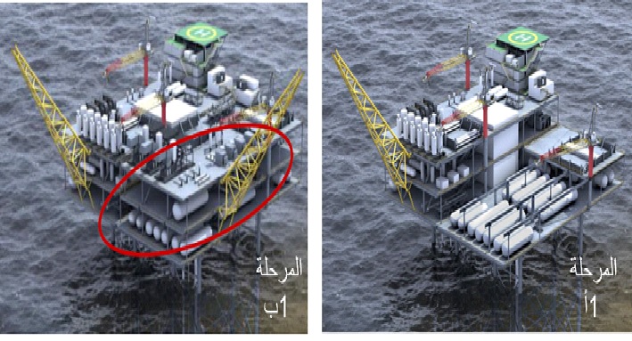 أما في المرحلة الثانية ” المرحلة 1B”، فمن المخطط تركيب نموذج للتصدير (Export Module) على المنصة كما هو مبين بالشكل-8 بطاقة 900 مليون قدم مكعب/اليوم لرفع طاقة المعالجة إلى 2.1 مليار قدم مكعب/اليوم (21.7 مليار متر مكعب/السنة)، وبتكلفة إجمالية 5-6 مليار دولار.