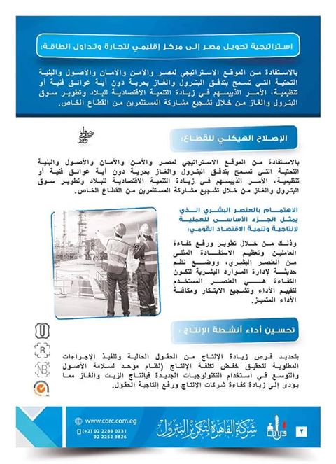شـهدت صناعـة البتـرول المصــرية على امتـداد عمــرها أحــداث وتطــورات سـياسية واقتصــادية وقــد كان لرجــال قطــاع البتــرول دورًا عظيمًا في جميع الكبوات الاقتصاديــة التي مـرت بهــا البــلاد حيث كان القطــاع الوحيــد من قطاعات الدولــة الذي لم يتأثـــر بالأحــداث والثـــورات بل على العكس لقـــد ازداد الإنتــاج بتوفيق من الله و ثبــات وقـــدرة رجـــال قطـــاع البتـــرول المخلصــين.