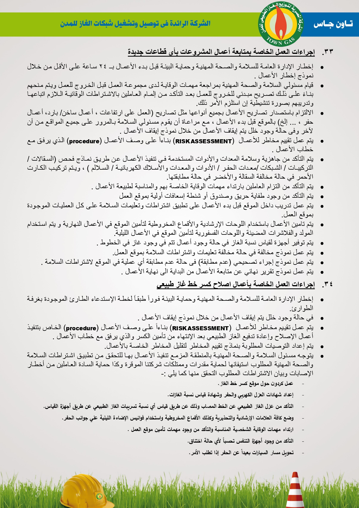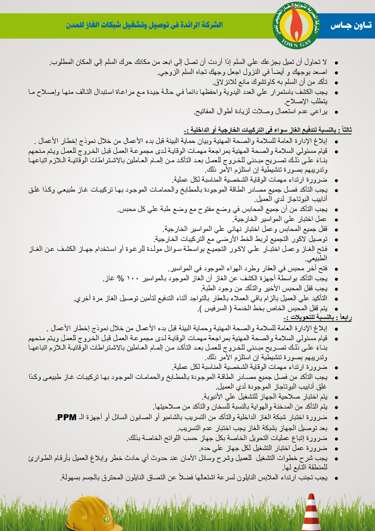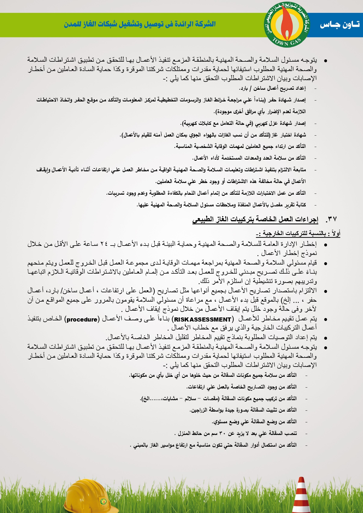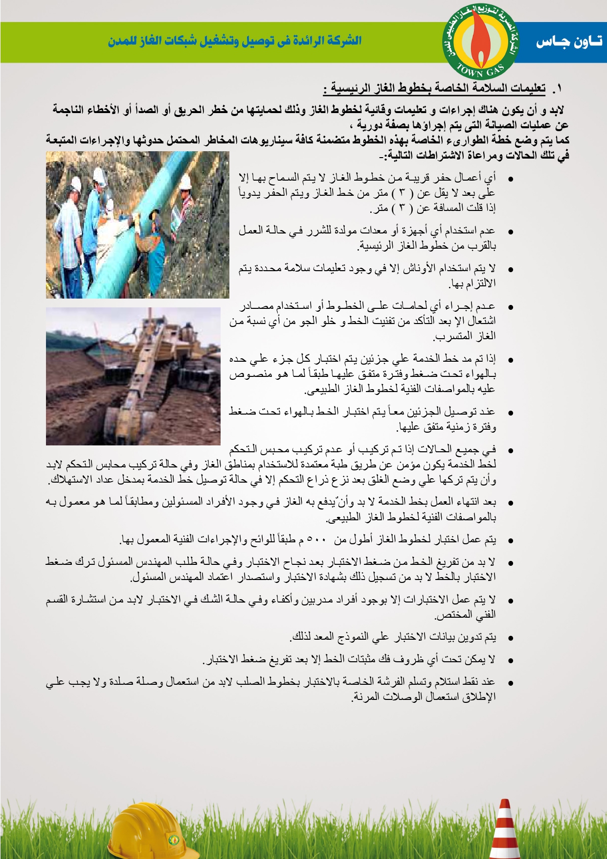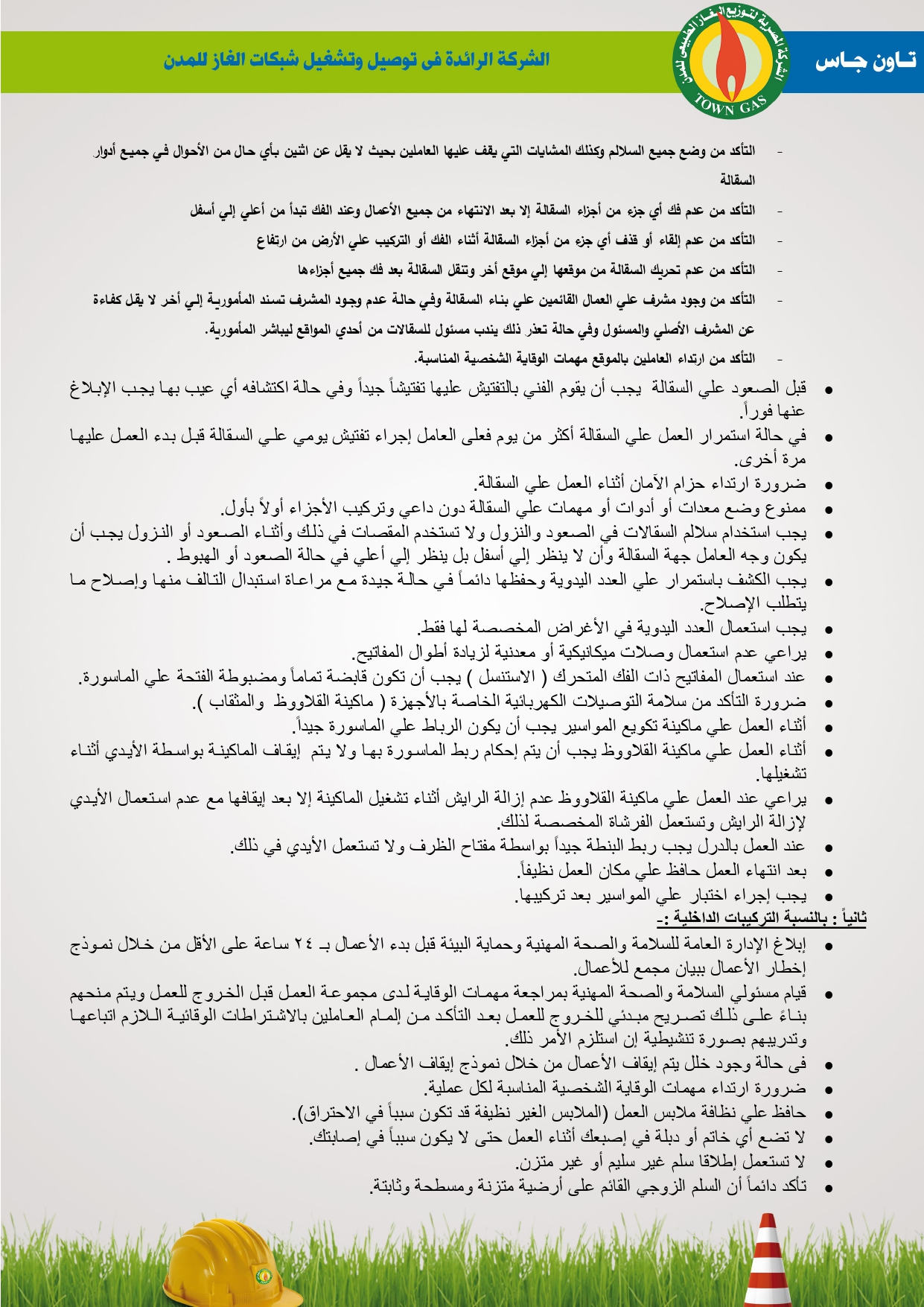 دليل السلامة والصحة المهنية فى توصيل الغاز الطبيعى بشركة تاون جاس