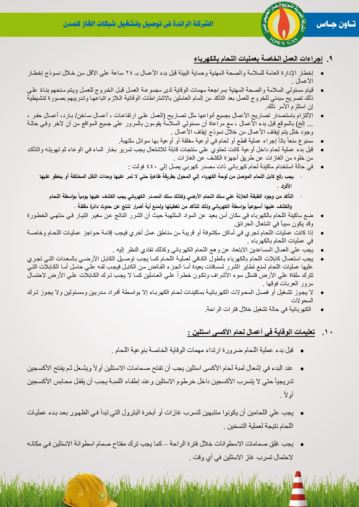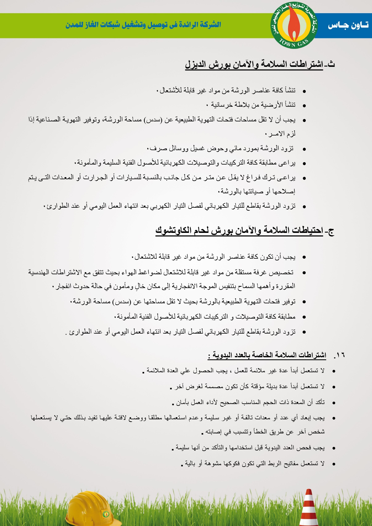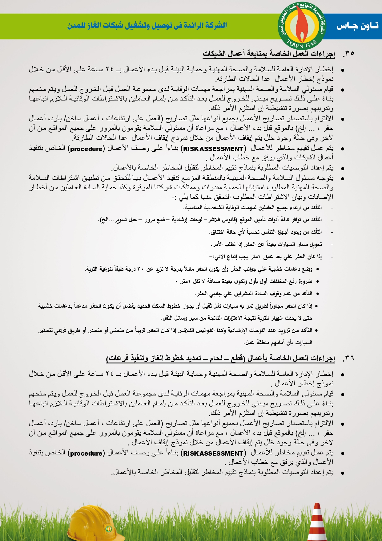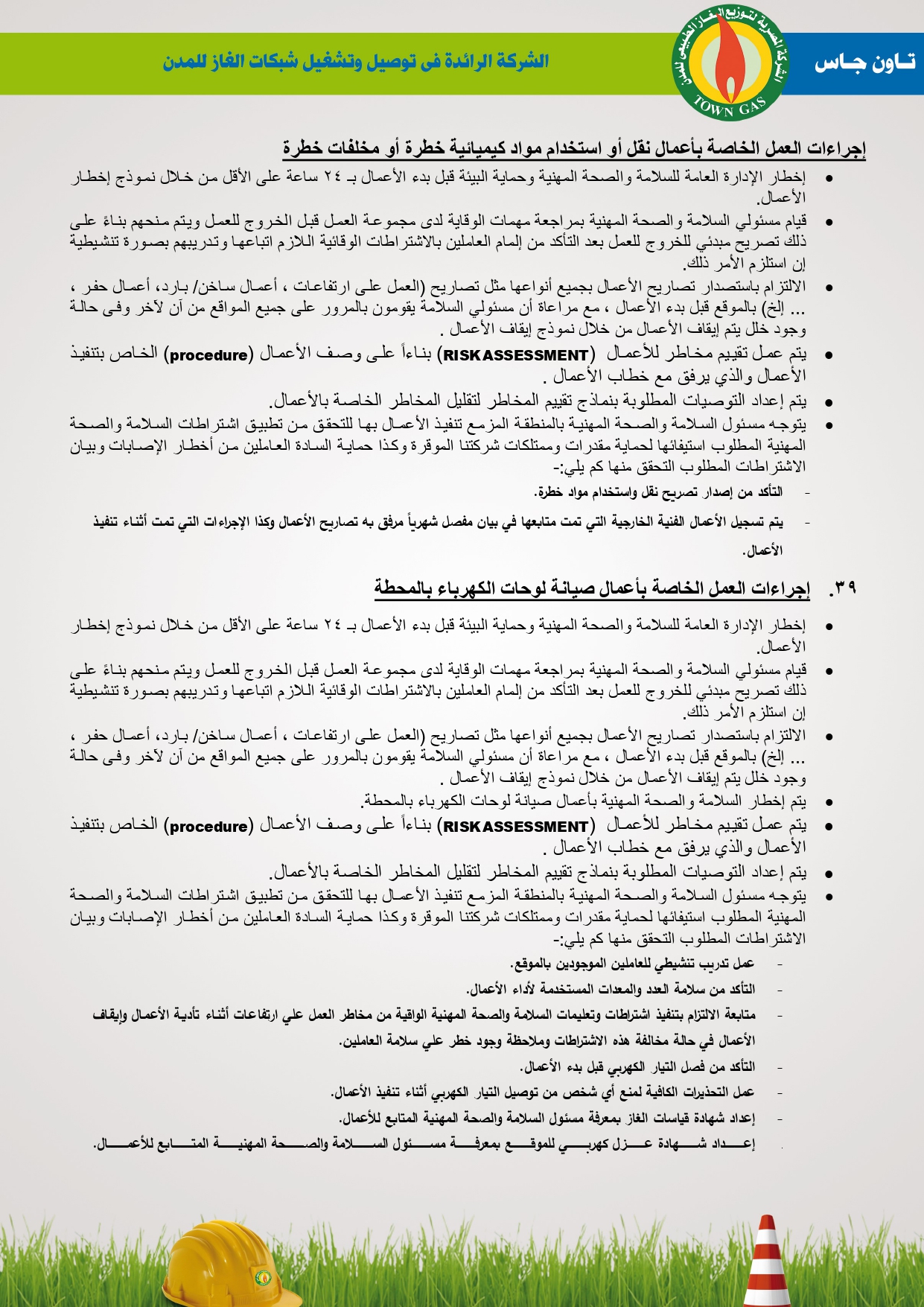 دليل السلامة والصحة المهنية فى توصيل الغاز الطبيعى بشركة تاون جاس