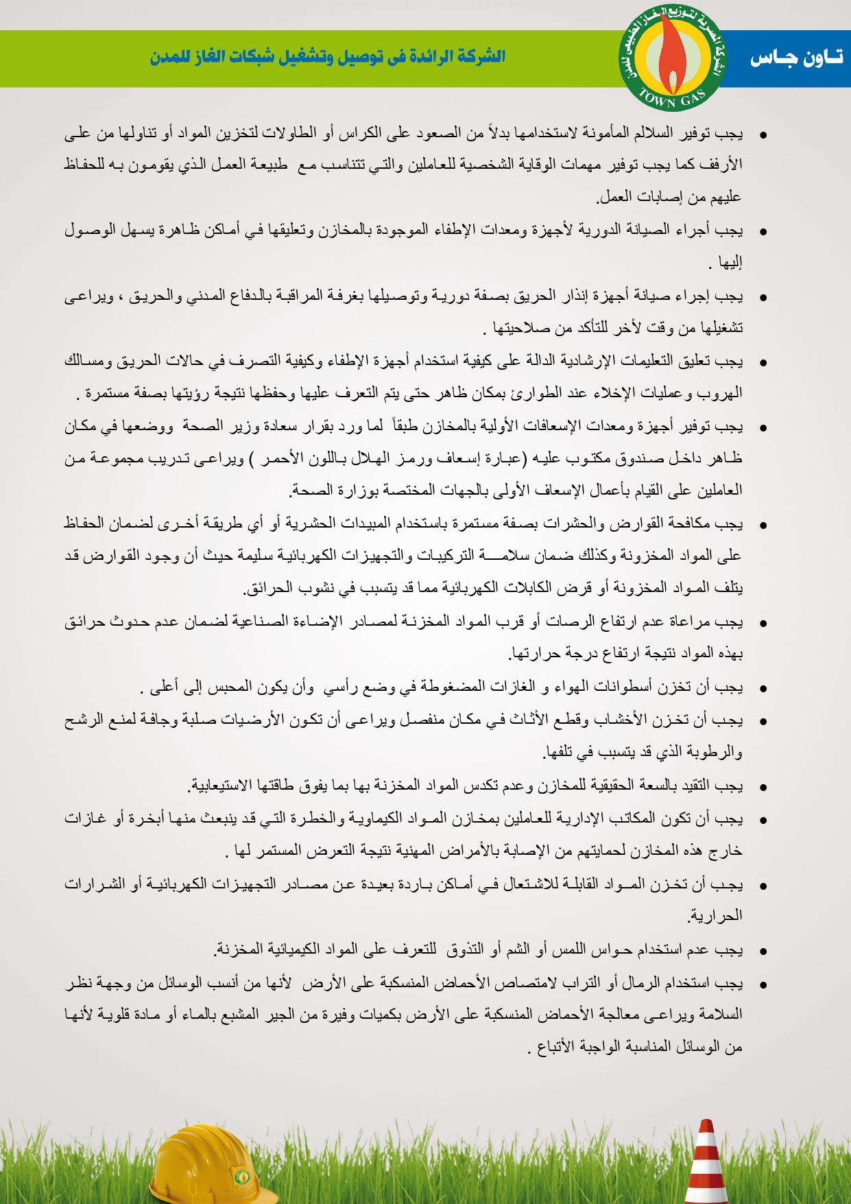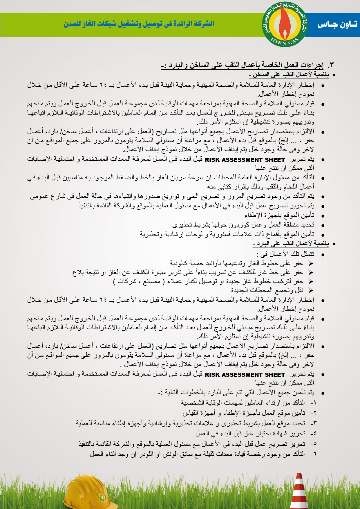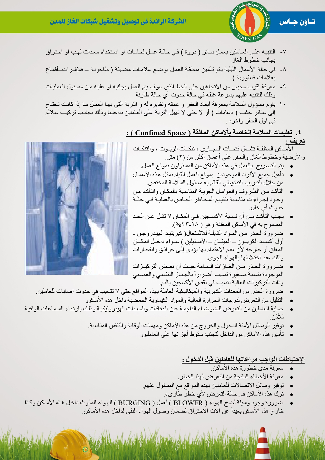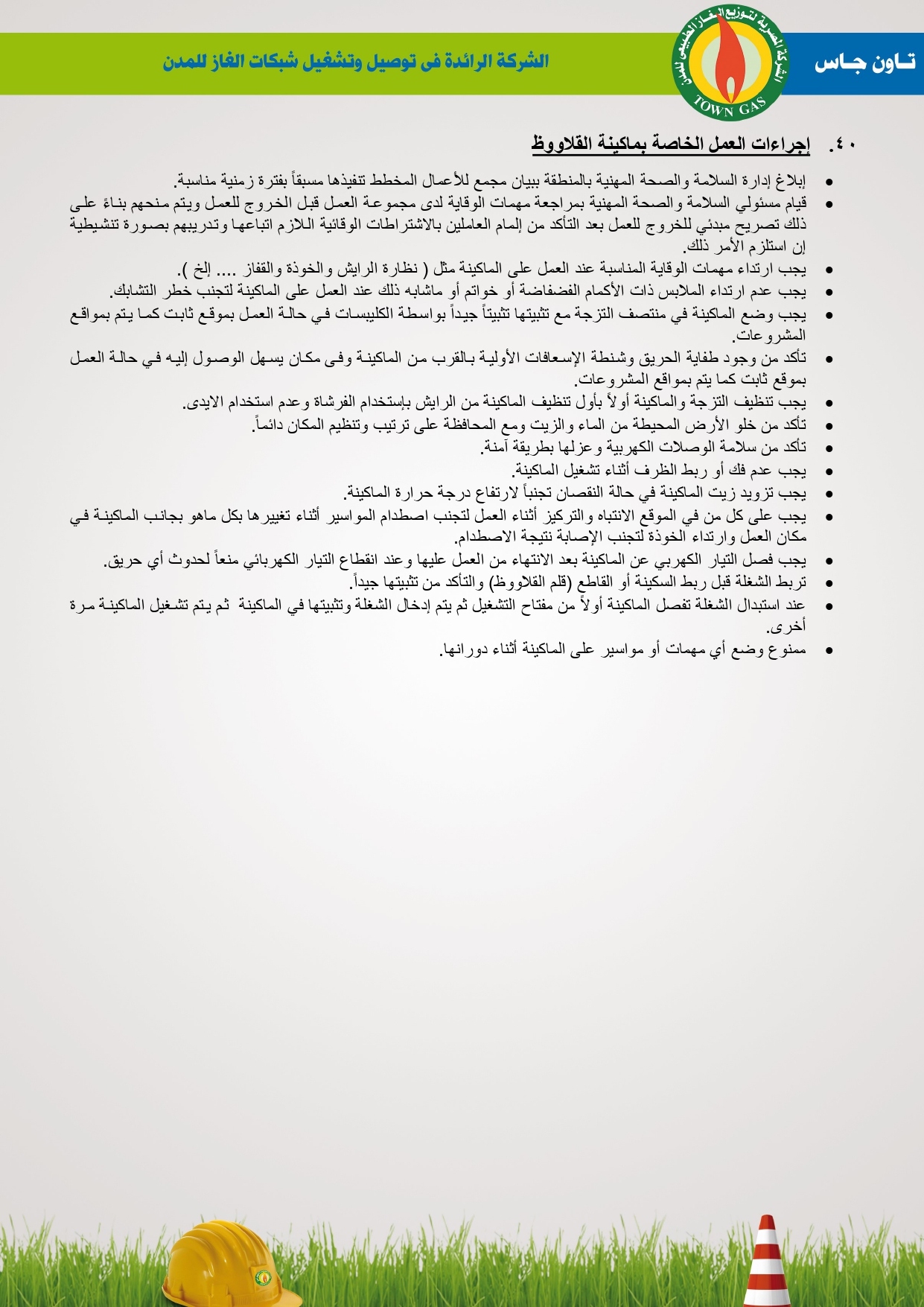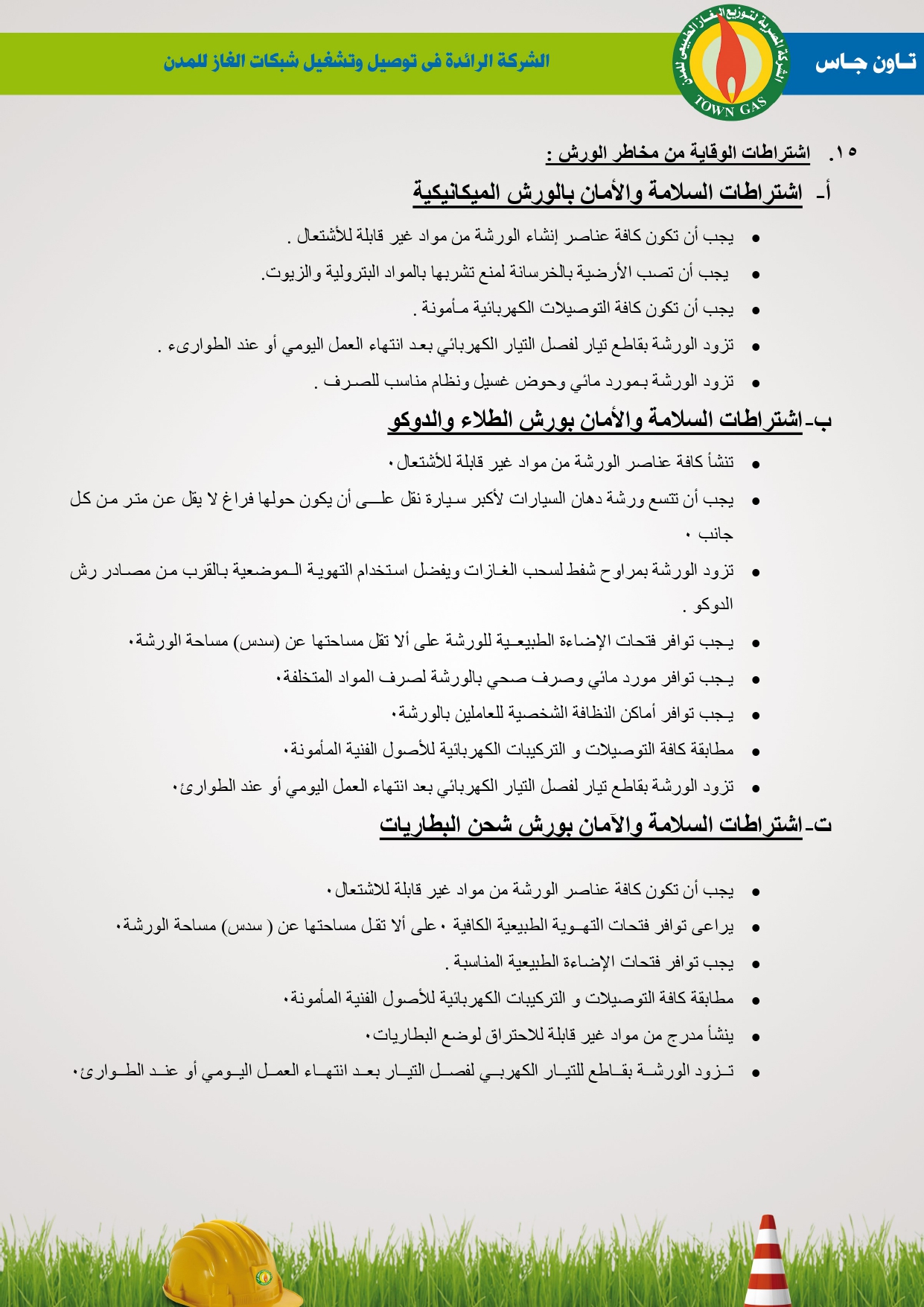 دليل السلامة والصحة المهنية فى توصيل الغاز الطبيعى بشركة تاون جاس