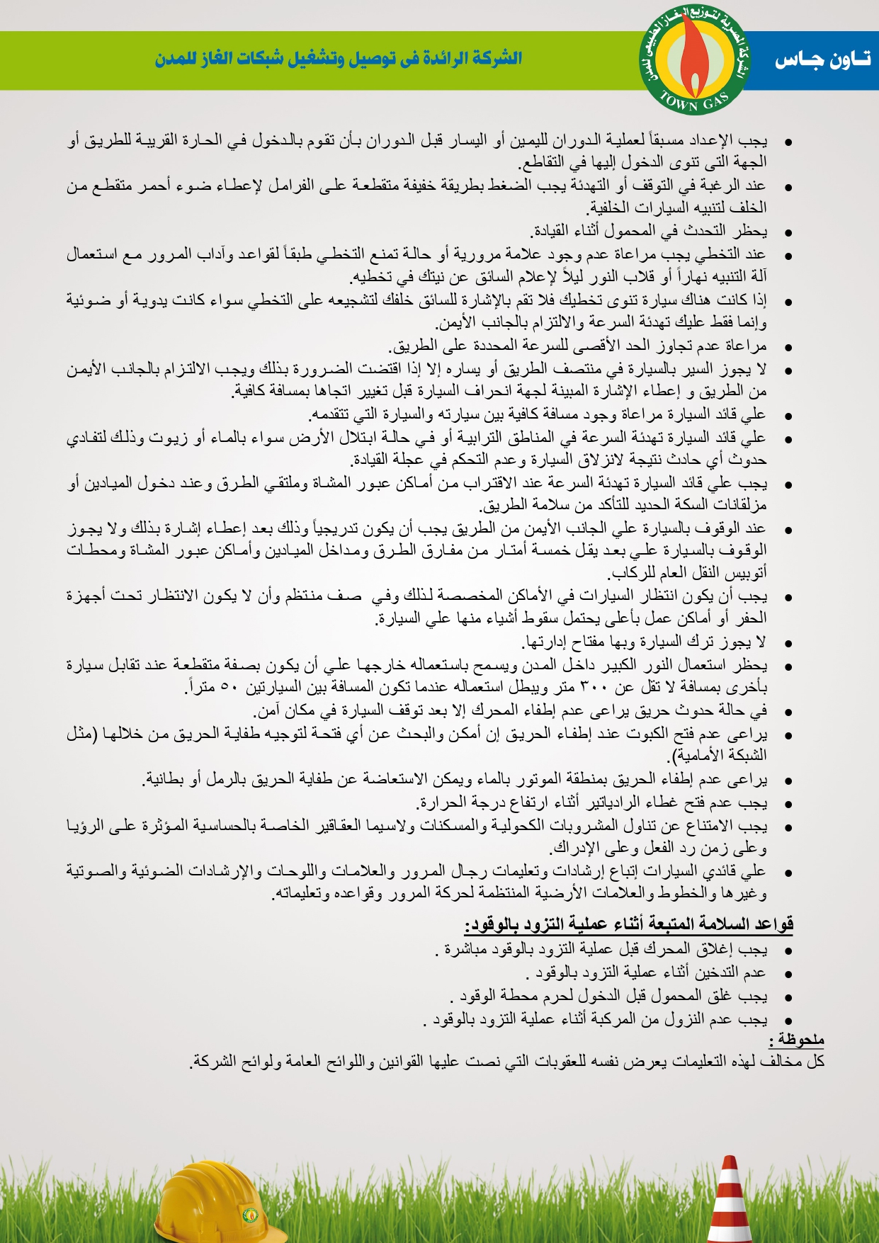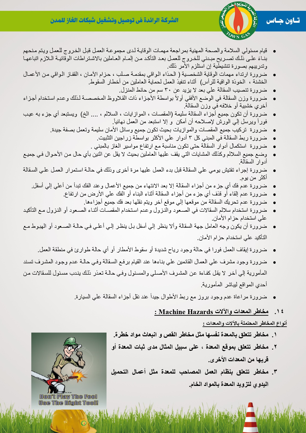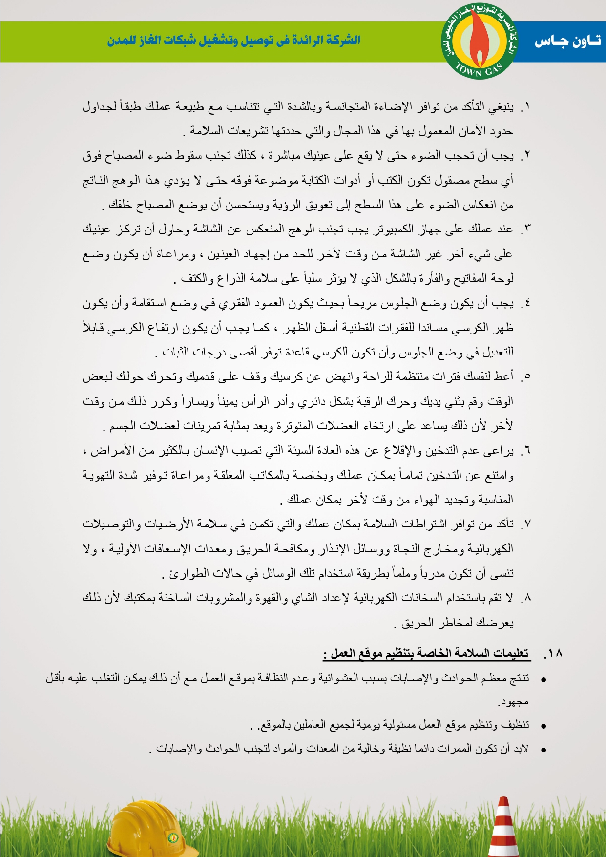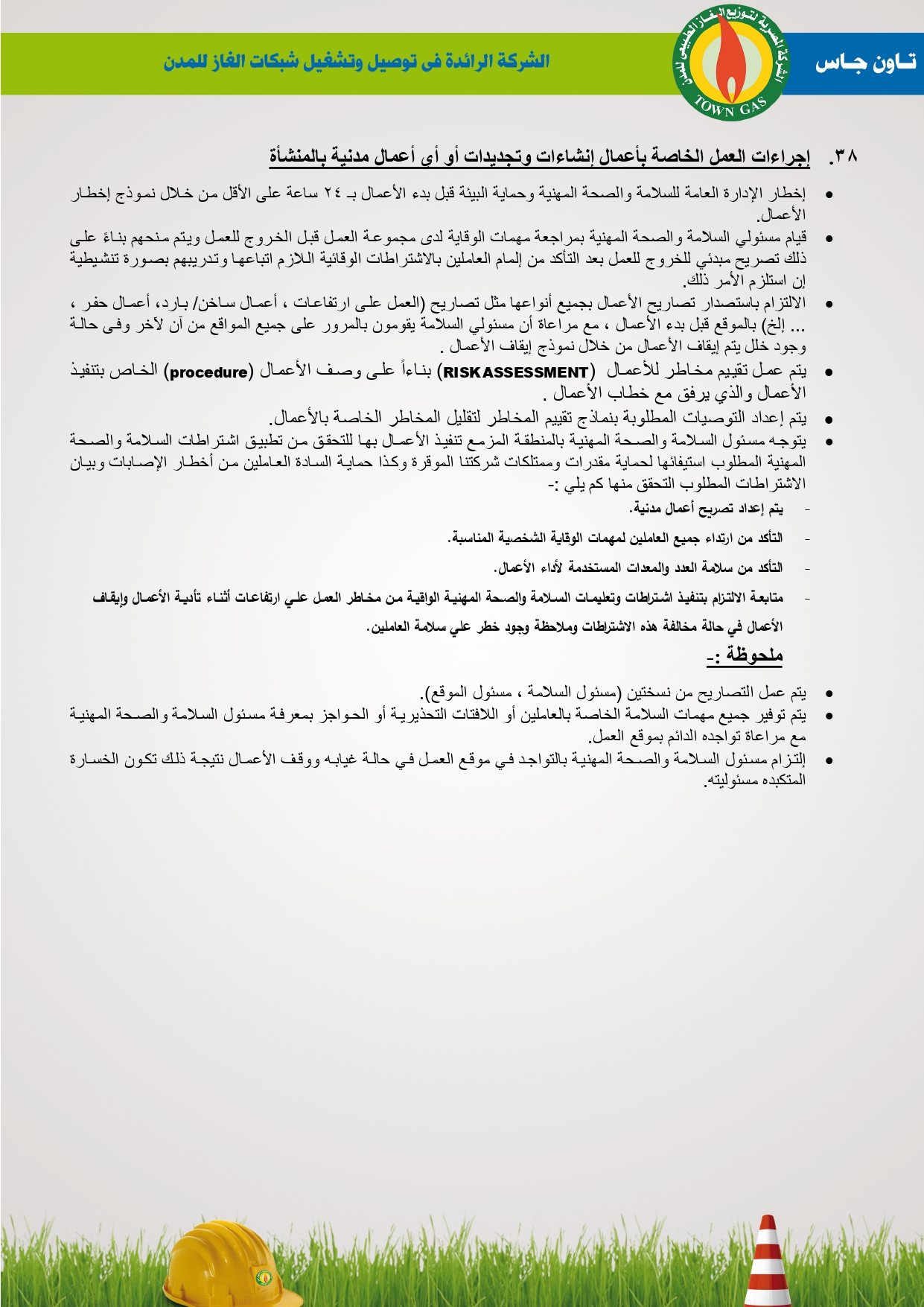 دليل السلامة والصحة المهنية فى توصيل الغاز الطبيعى بشركة تاون جاس