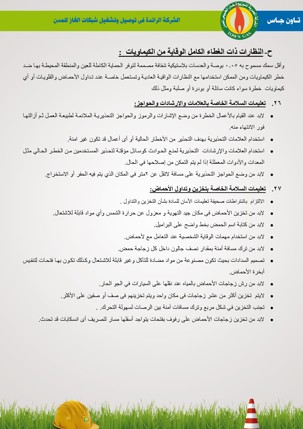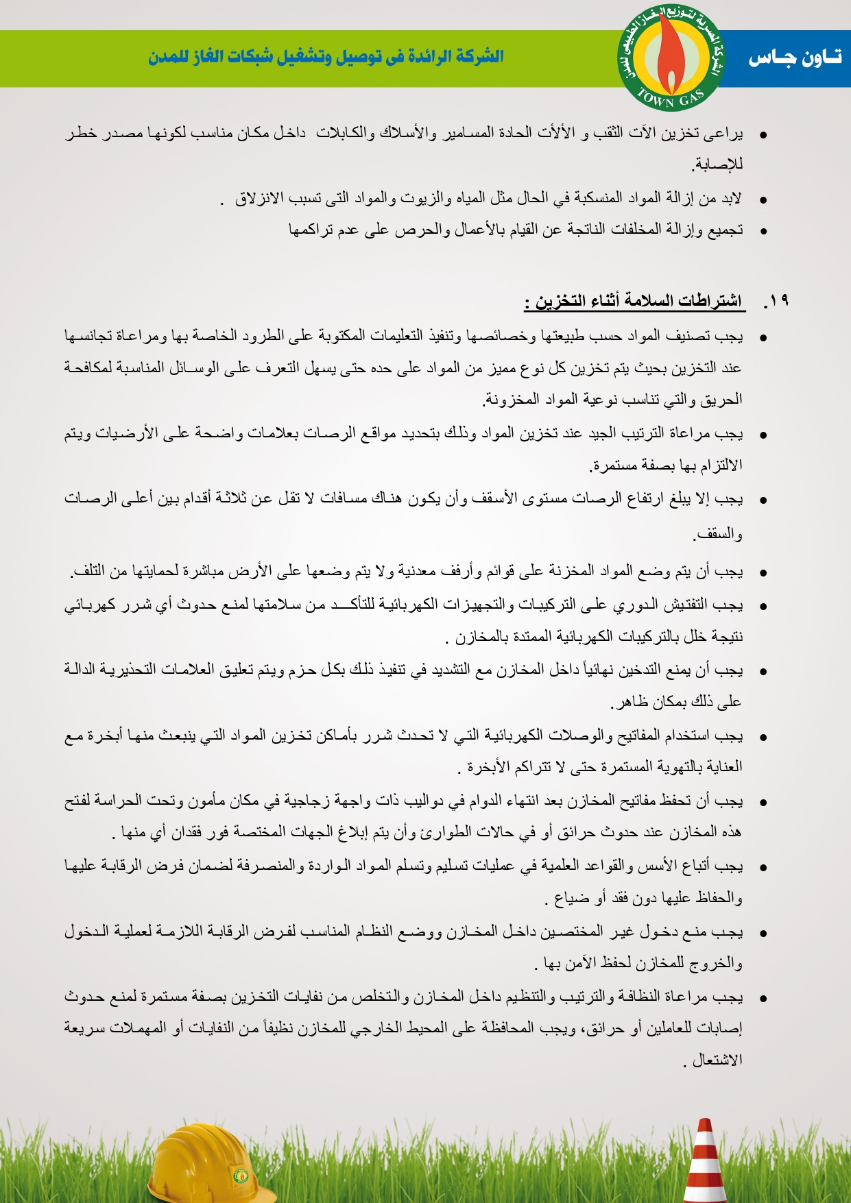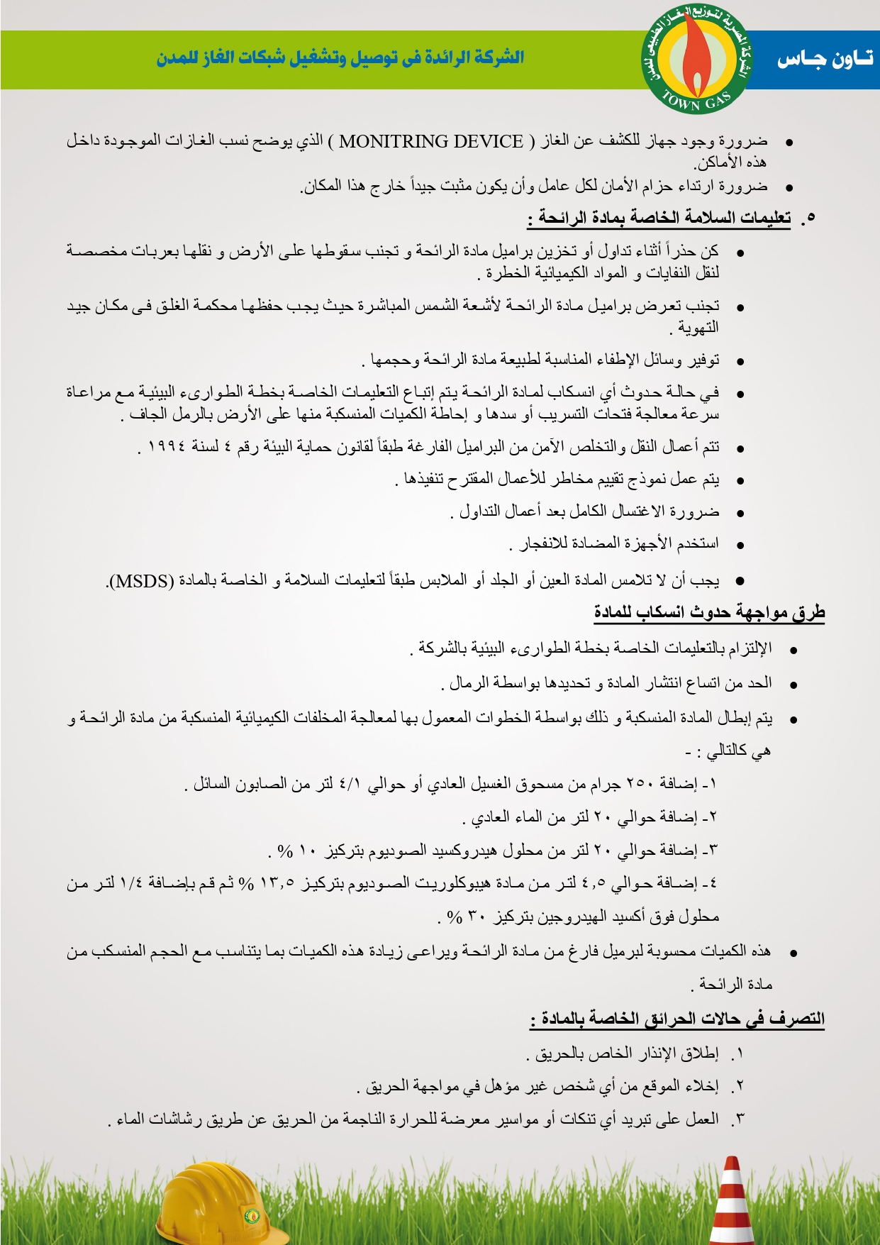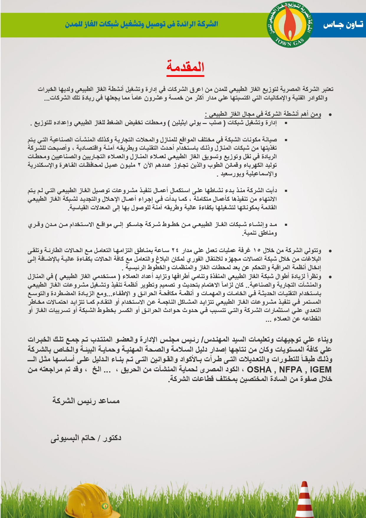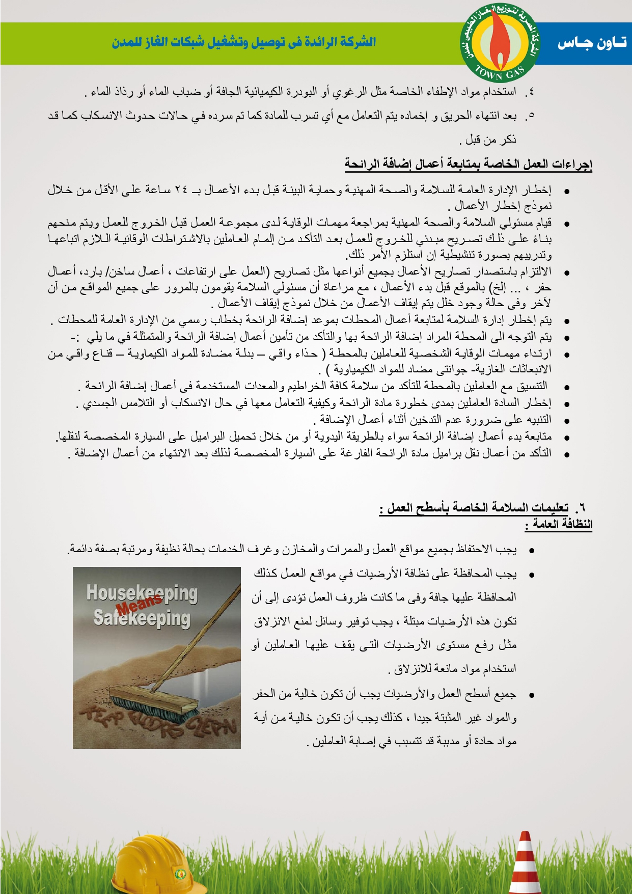 دليل السلامة والصحة المهنية فى توصيل الغاز الطبيعى بشركة تاون جاس
