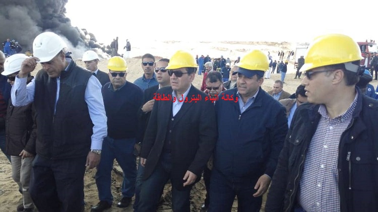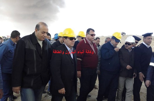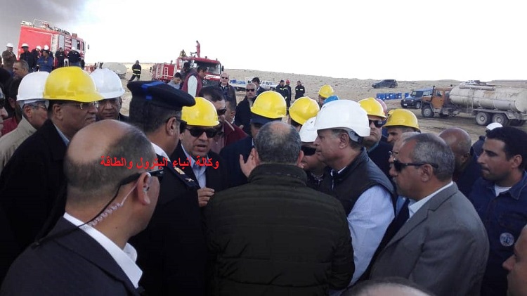 صور..وزير البترول يتفقد موقع حريق بريمة حفار فى بئر عسل التابع”العامة للبترول”برأس سدر