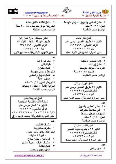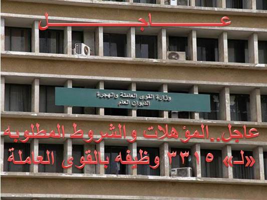 عاجل..المؤهلات والشروط المطلوبه 3315 وظيفه بالقوى العاملة