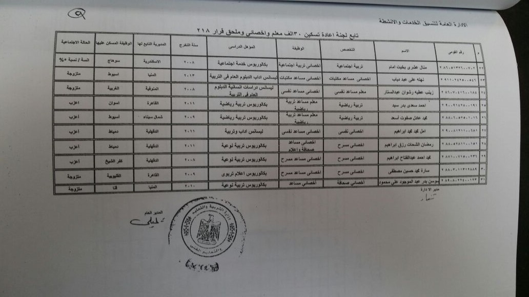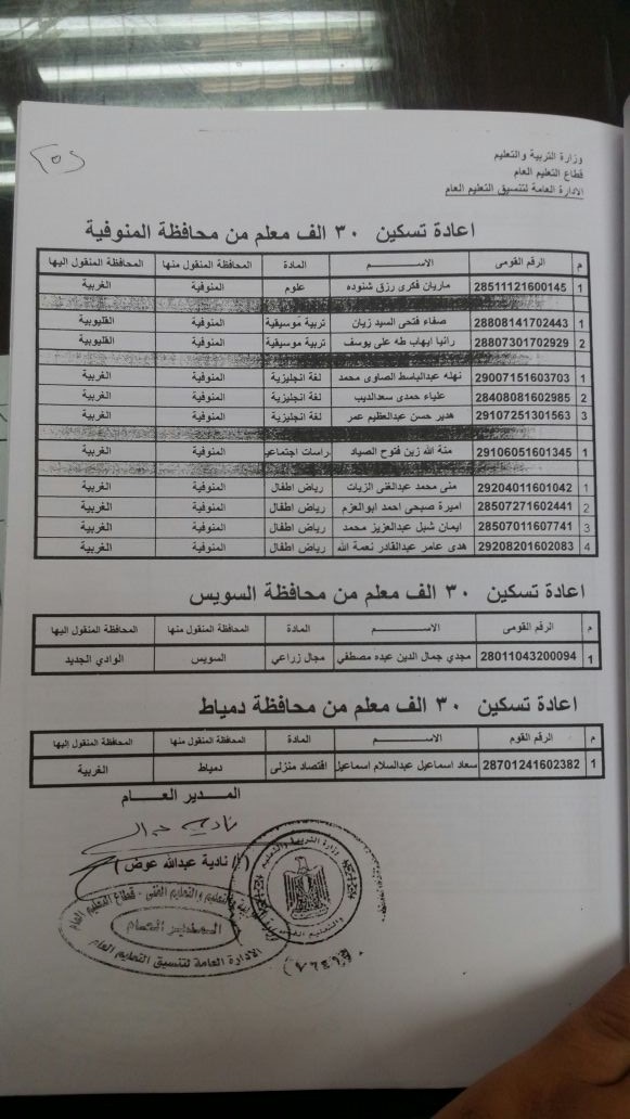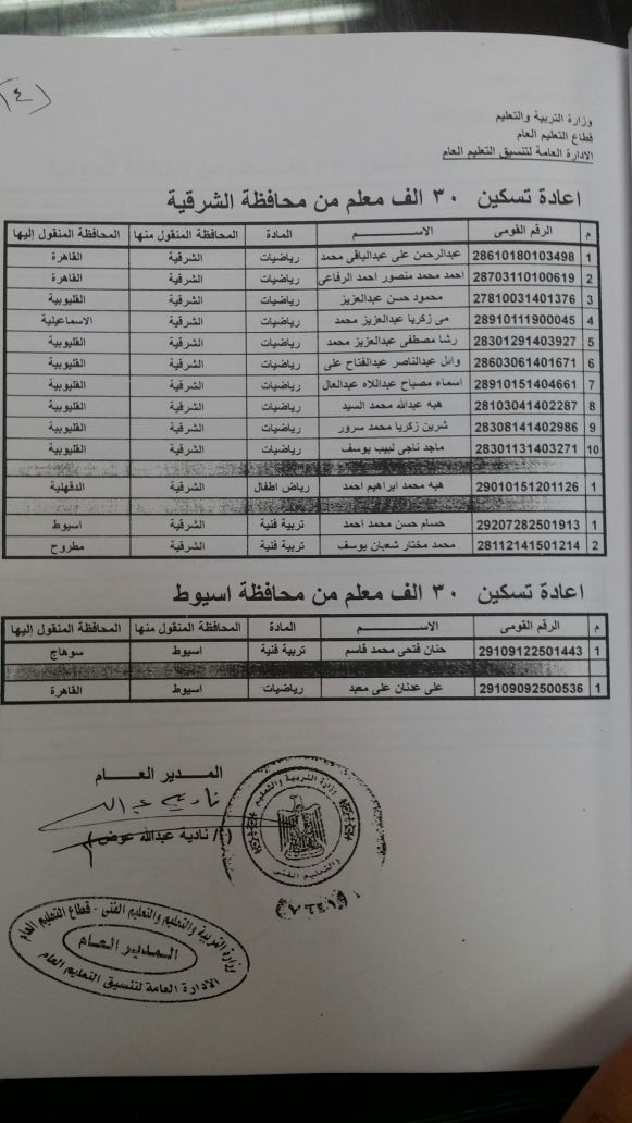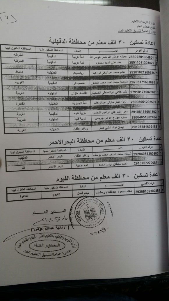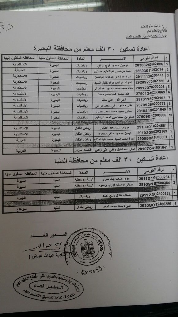 وتنشر أسماء المعلمين الذين تقرر عودتهم للمديريات