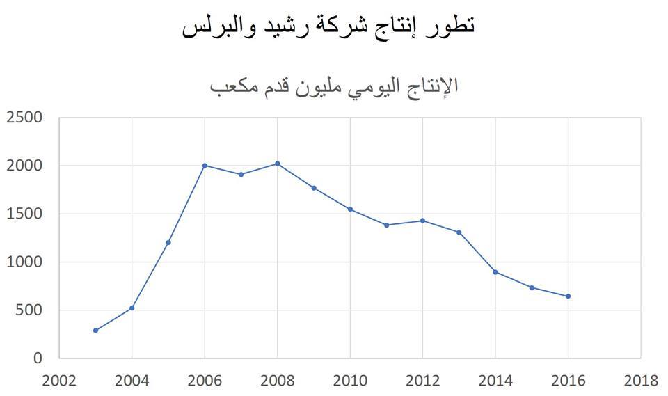 فالأرقام لا تكذب ولا تتجمل عن الإنتاج فى هذه الحقول, والتى حدث حولها ضجيجا عند اكتشافها بأنها أمل مصر ومستقبلها, فعندما نستعرض مراحل التطور والتدهور فى الإنتاج من حقول رشيد والبرلس, نبدأ من حيث وصل إليه الوضع حاليا, فتصريحات من المسئولين عن الإنتاج بشركة رشيد والبرلس للبترول حاليا , وبالتحديد من المهندس هشام العطار رئيس الشركة الذى يؤكد أن انتاج الشركة اليوم وصل إلى 526 مليون قدم مكعب فى اليوم, فهذه التصريحات التى صرح بها العطار جاءت بحدوث طفرة فى الانتاج بعد أن تدهور الإنتاج فى عصور سابقيه إلى أقل من 250 مليون قدم فى اليوم, بعد أن كان الانتاج من هذه الحقول وصل إلى 2,2 مليار قدم مكعب فى اليوم منذ اكثر من سبع سنوات.