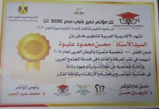 مؤتمر تميز شباب مصر ٢٠٣٠ يكرم محسن عليوة أمين عمال حزب حماة الوطن