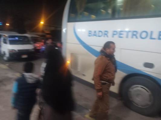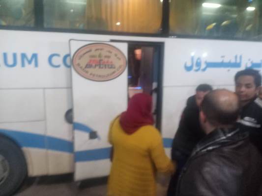 وصول اتوبيس العاملين فى ابسكو من حادث شرم الشيخ أمام مقر بدر الدين للبترول بمصر الجديدة وهم بصحة جيدة .
