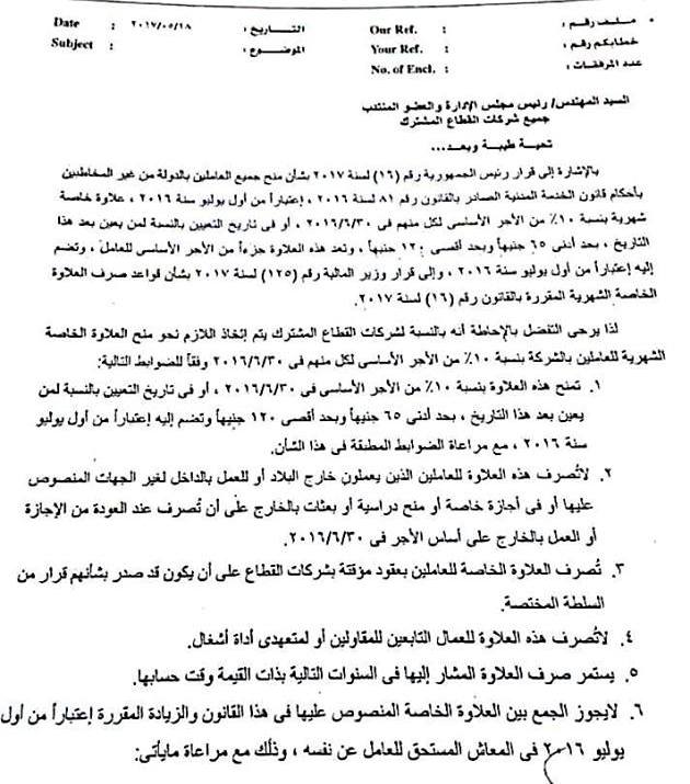 ننشر ضوابط صرف علاوة شركات قطاع البترول المشترك