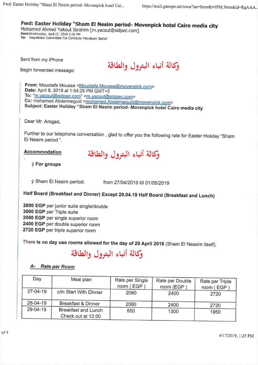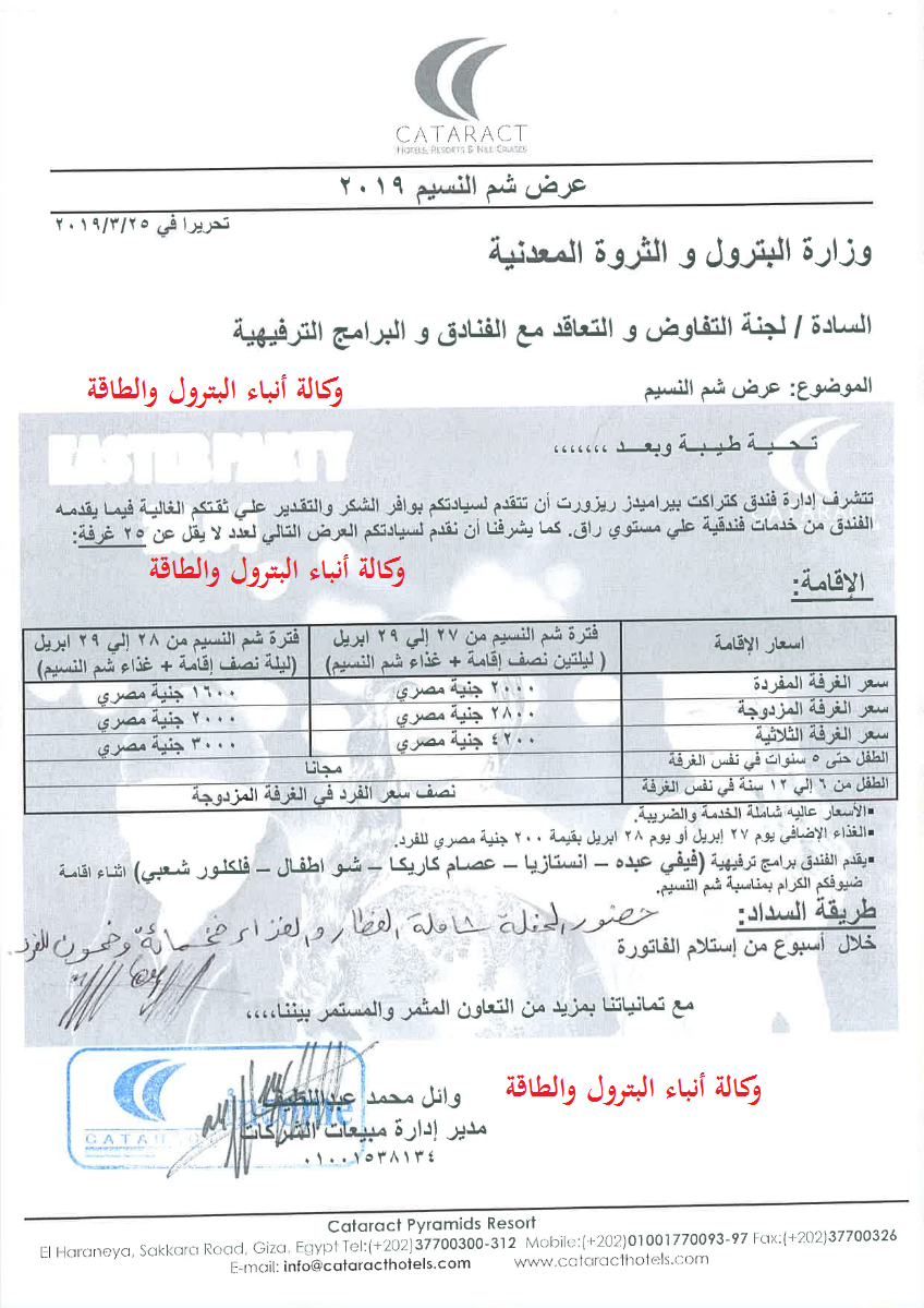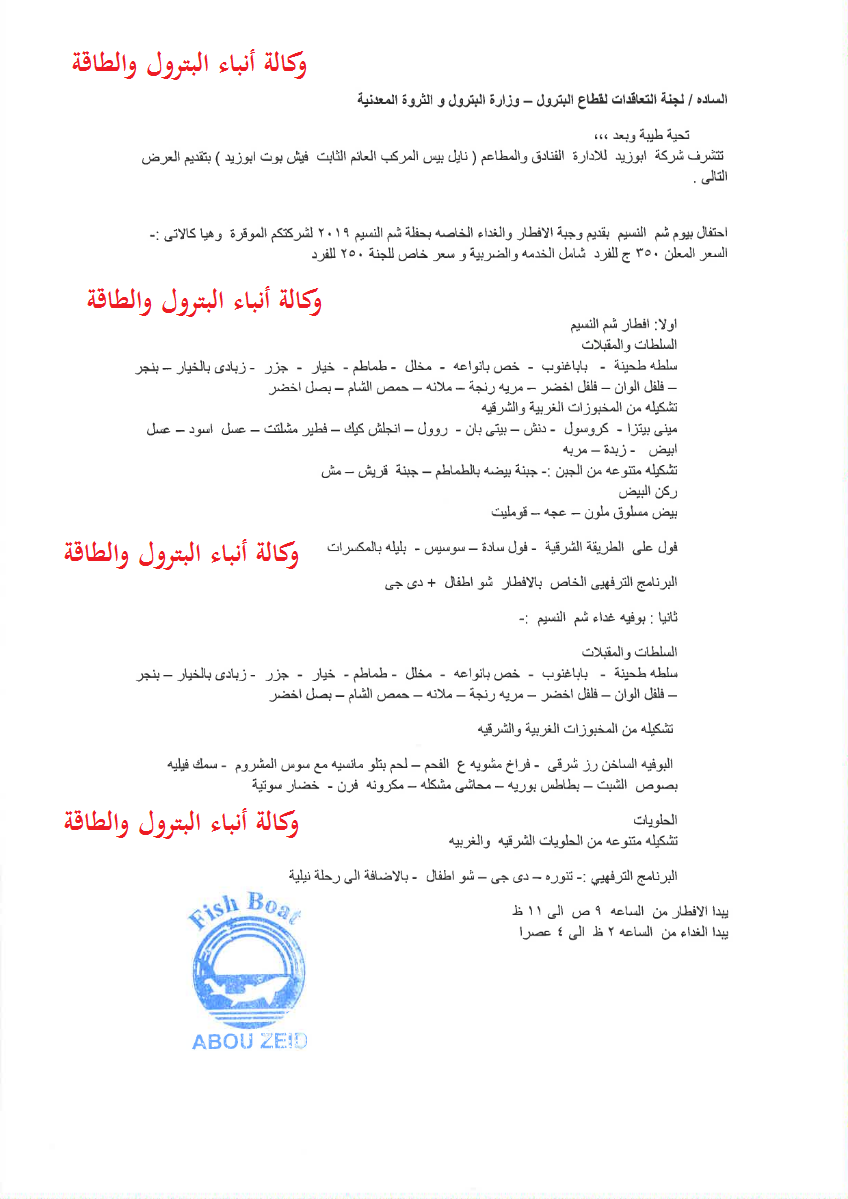 أعلنت لجنة تعاقدات العلاقة العامة بوزارة البترول والثروة المعدنية، عن عدد من العروض للعاملين بشركات قطاع البترول خلال شم النسيم كالتالى:-
