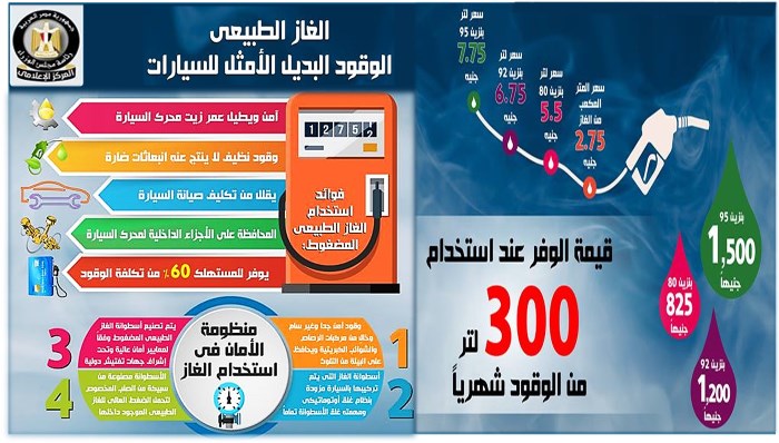 وزارة البترول تنشر انفوجراف عن فوائد الغاز الطبيعى للسيارات