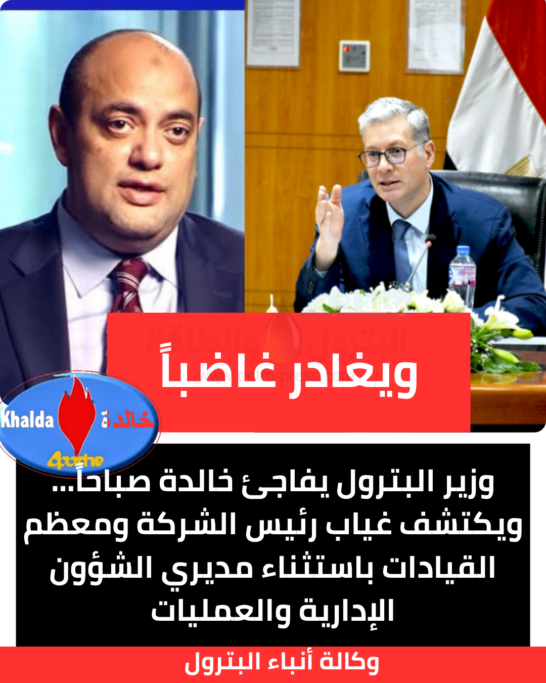 وزير البترول يفاجئ خالدة صباحاً… ويغادر غاضباً بعد اكتشاف غياب رئيس الشركة ومعظم القيادات باستثناء مديري الشؤون الإدارية والعمليات