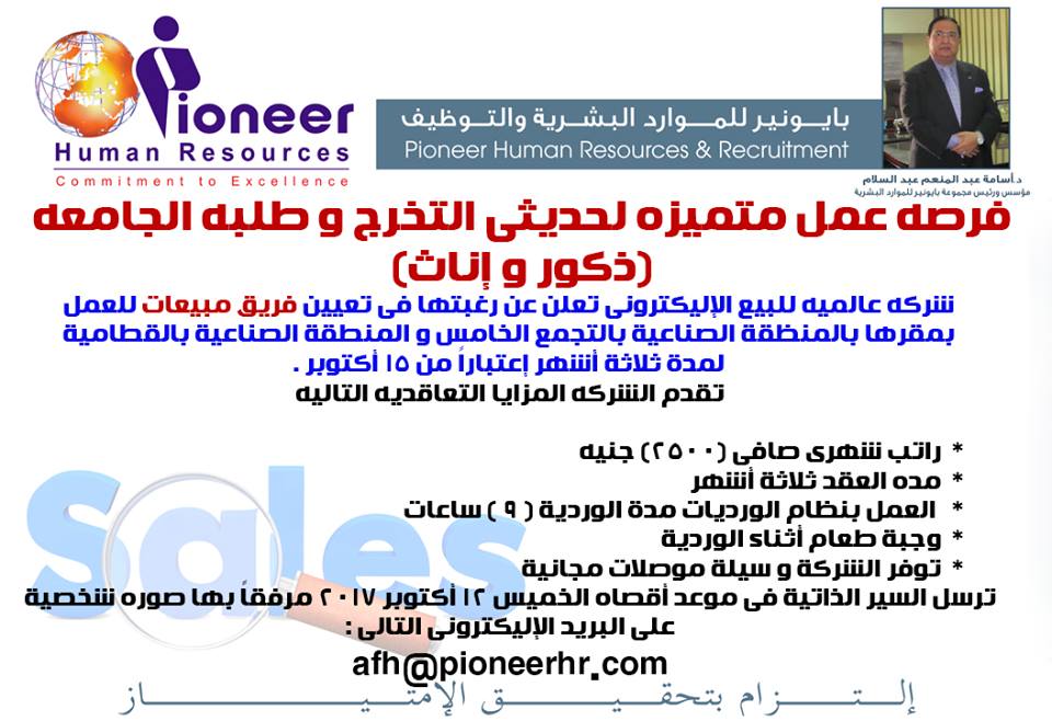 وظائف..فرصة عمل متميزة لحديثى التخرج وطلبة الجامعة “ذكور وايناث”