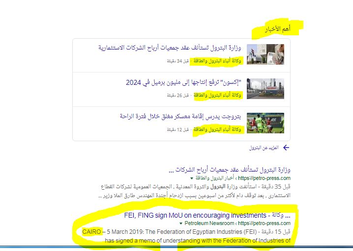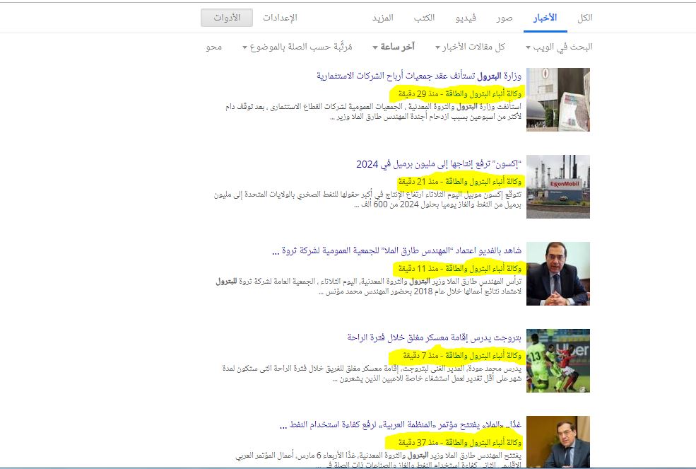 وكالة أنباء البترول تتصدر محركات البحث وأهم الأخبار فى جوجل