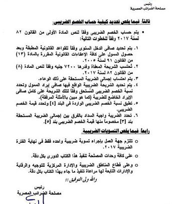 وقال عمرو المنير، نائب وزير المالية للسياسات الضريبية إنه تم إعداد هذا الكتاب الدورى لتعميمه على قطاعات مصلحة الضرائب المصرية ومأمورياتها لتطبيق ما ورد به من القواعد والأحكام للتيسير على الممولين (الموظفين) المخاطبين بهذه الأحكام، وحسمًا لأى خلاف فى وجهات النظر فى هذا الشأن.
