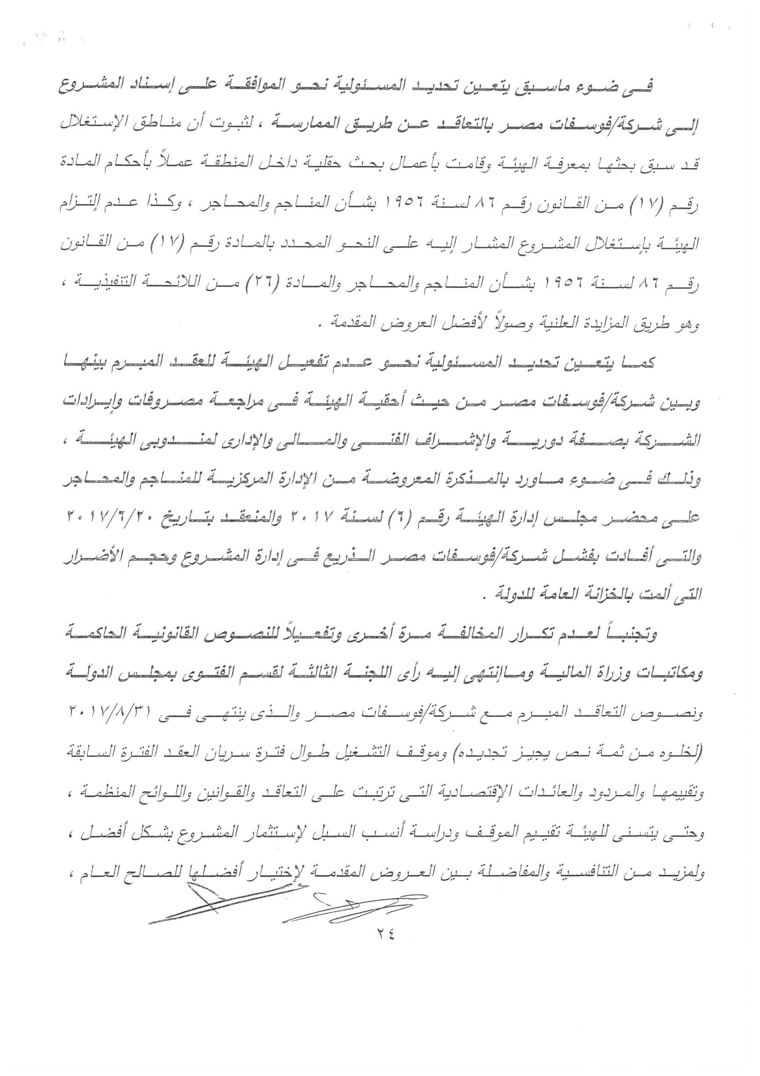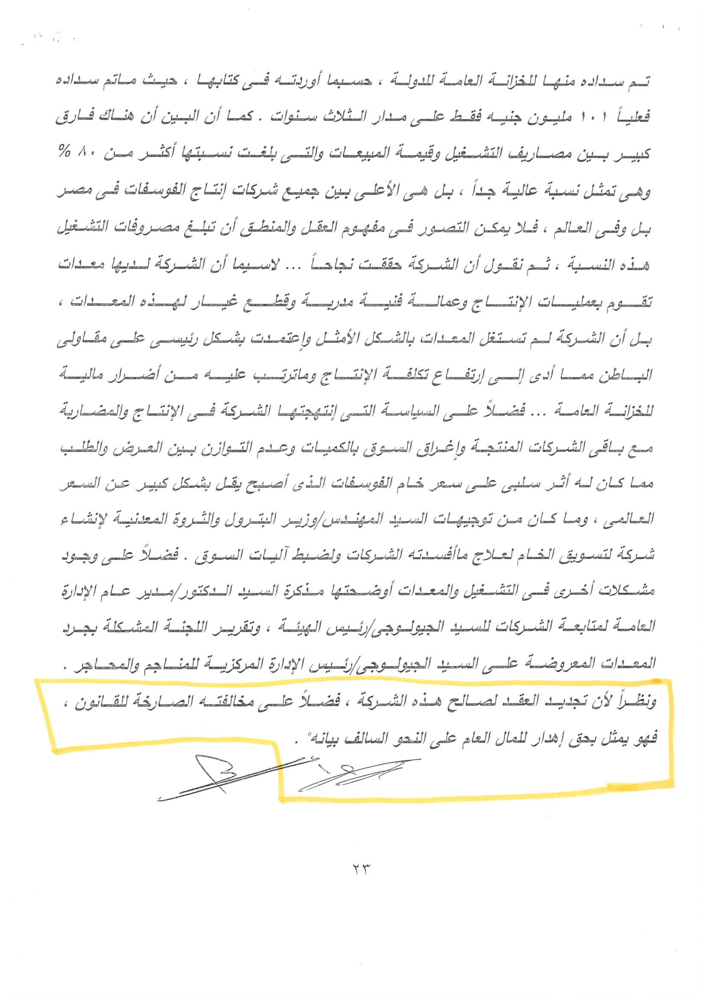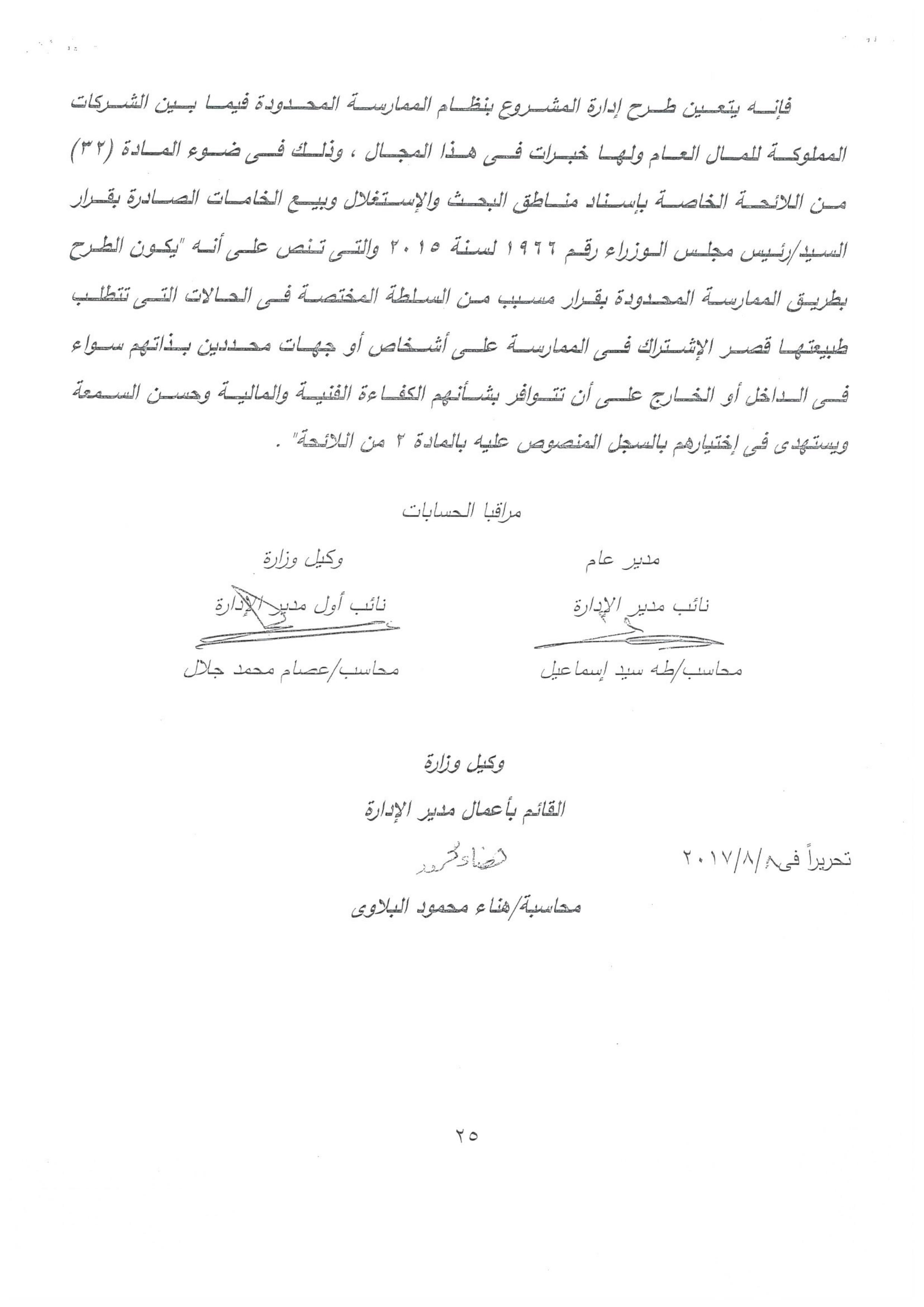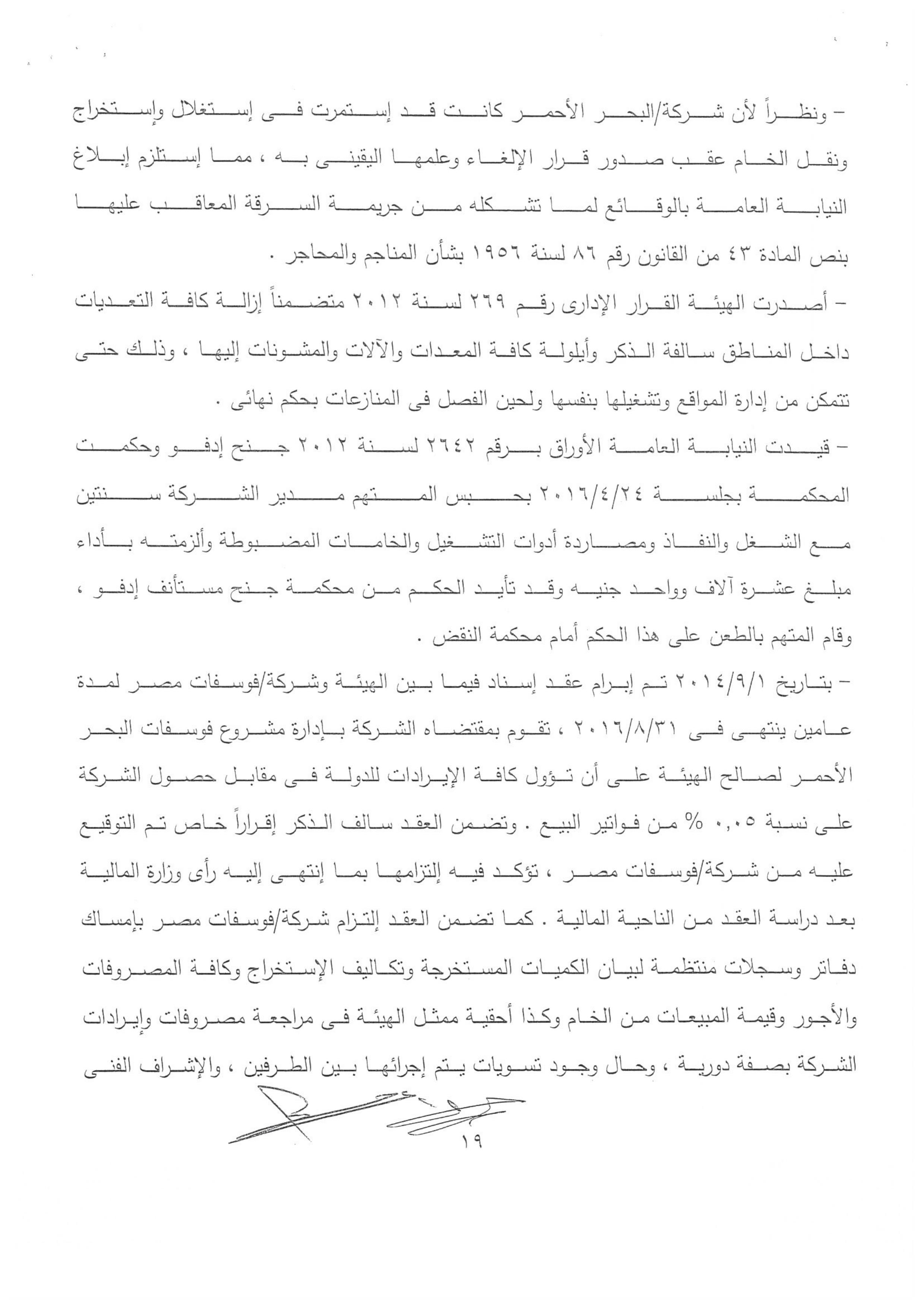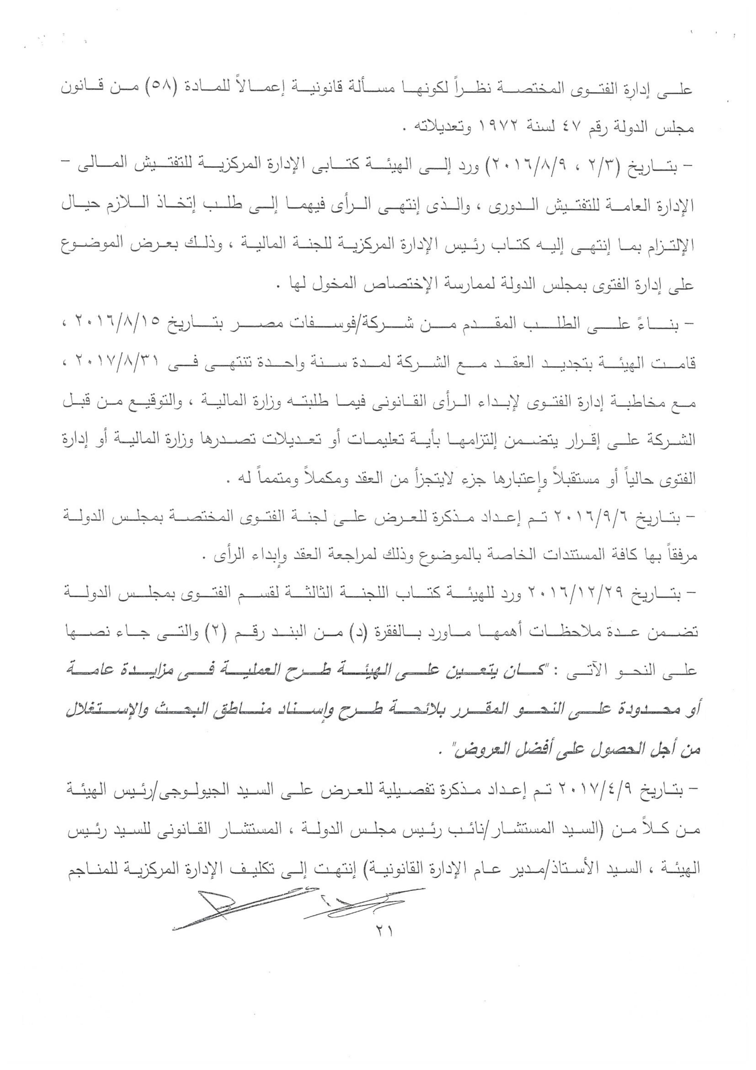 وحصلت “وكالة أنباء البترول والطاقة”، .على تقرير الجهاز المركزى للمحاسبات، والذى أكد صحة ماذكرته المصادر، بأن الجهات الرقابيه تحركت بناء على تقرير الجهاز المركزى للمحاسبات، والذى تضمن فى ختام التقرير نصاً” ونظرا إلى أن تجديد العقد لصالح هذه الشركة،فضلا عن مخالفته الصارخه للقانون فهو يمثل بحق اهدار للمال العام على النحو السالف بيانه”.