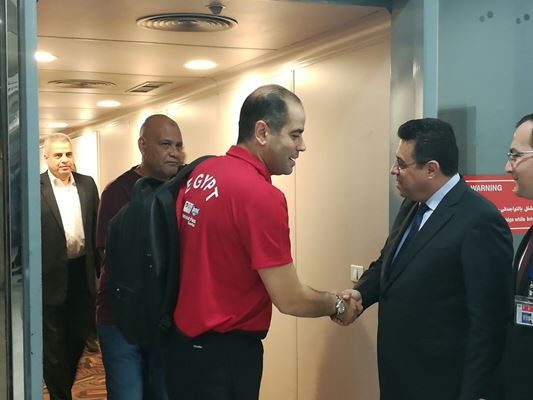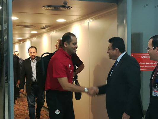 وكان في استقبال بعثة المنتخب الوطني السفير المصرى بدولة الكويت طارق القوني وهاني أبو ريدة رئيس الاتحاد المصري لكرة القدم.