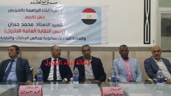أقامت جمعية أبناء البراهمة برئاسة الدكتور أحمد الضبع بالسويس حفل تكريم ، لـ”محمد جبران رئيس النقابة العامة للعاملين البترول وذلك بمناسبة فوزه فى الانتخابات التى تم اجرائها مؤخرا على منصب الرئيس والعضوية ، بجانب جهوده فى مجال العمل النقابى .