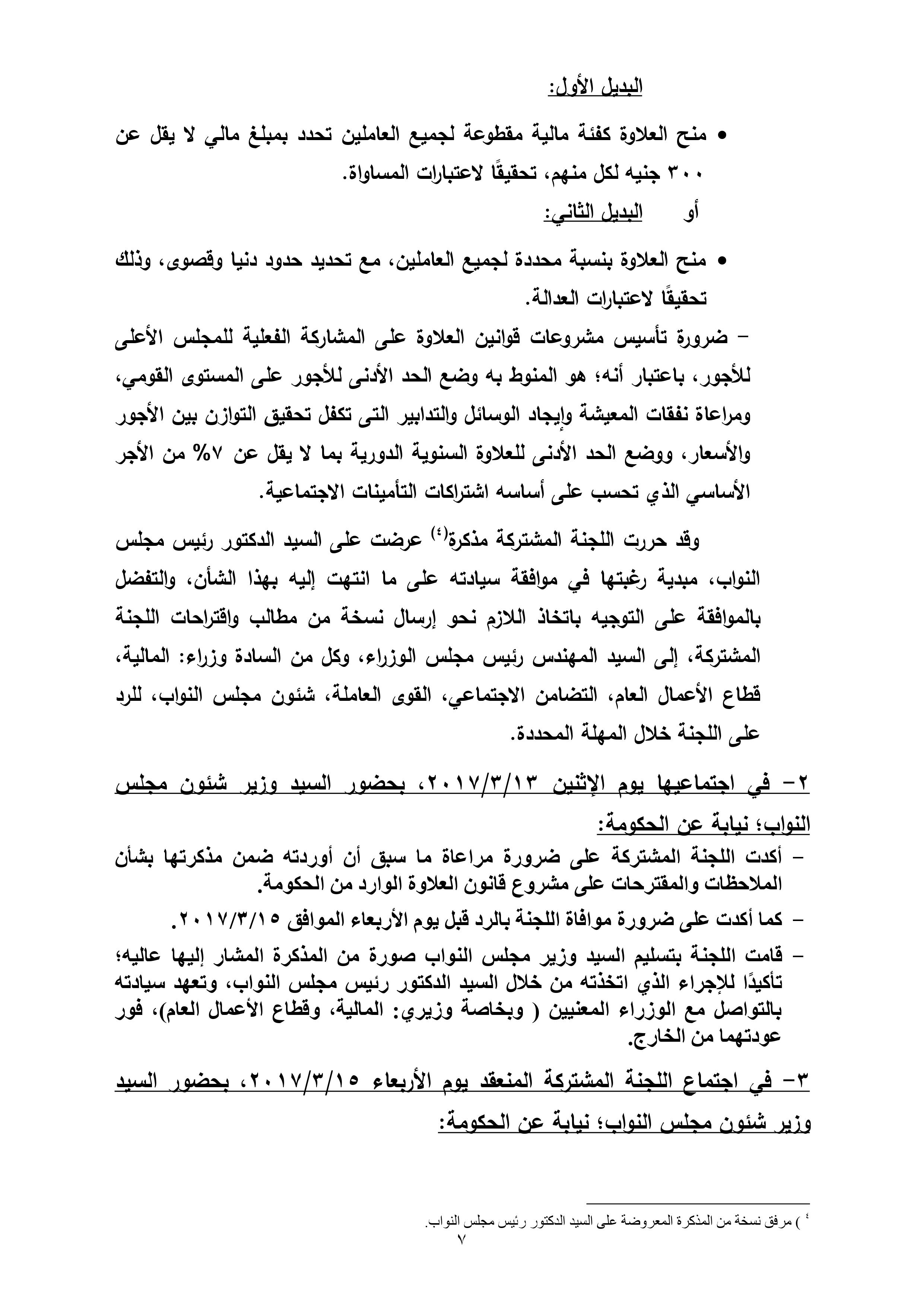 ننشر نص تقرير”العلاوة الخاصة” النهائى الذى سيتم عرضة وإعلانة فى 10أبريل