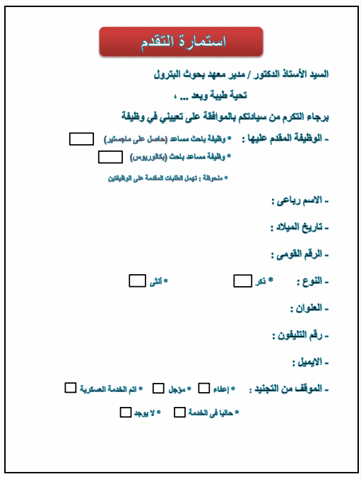ننشر إعلان وظائف وشروط واستمارة التقديم لمعهد بحوث البترول