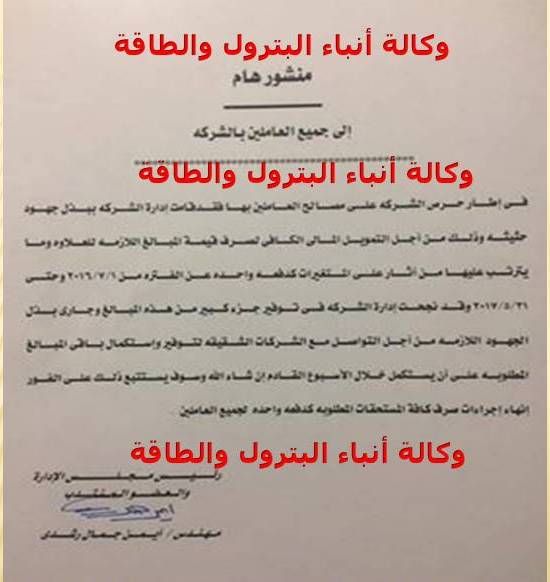 إدارة صيانكو تتراجع وتصدر منشور جديد بصرف العلاوة دفعة واحدة بدلا من 7 دفعات
