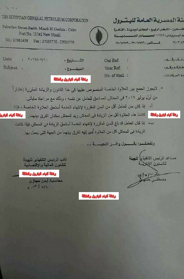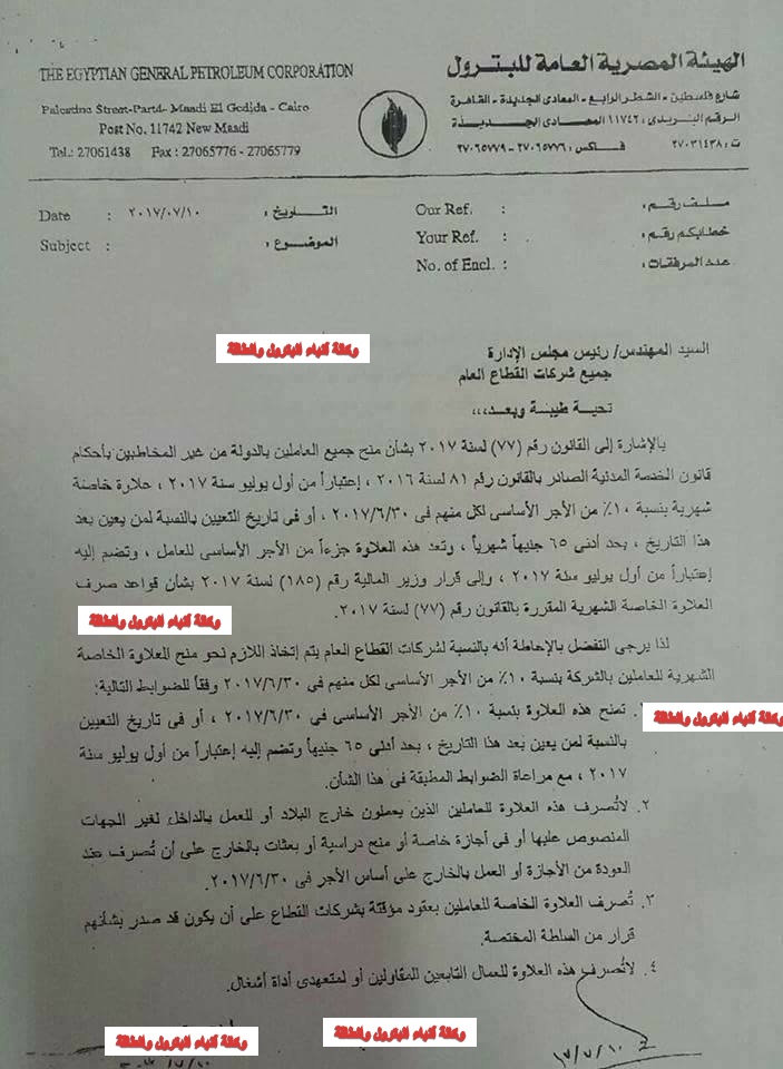 ننشر قواعد هيئة البترول لصرف علاوة جميع شركات بترول القطاع العام